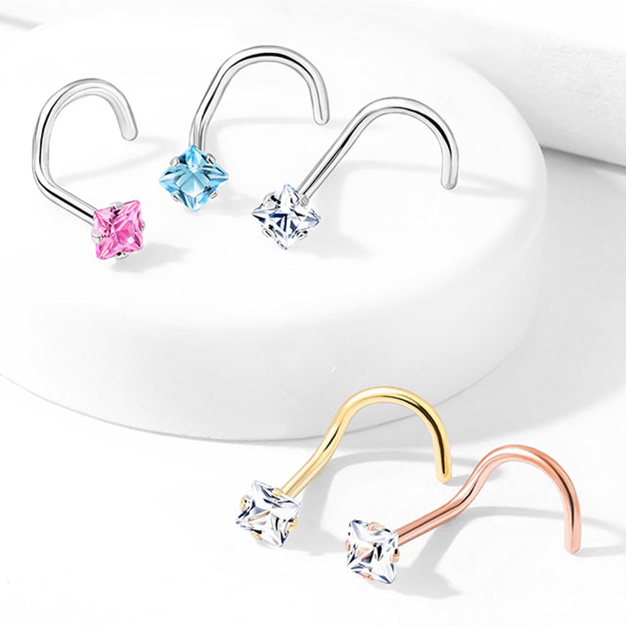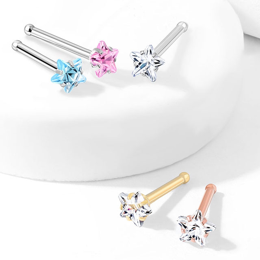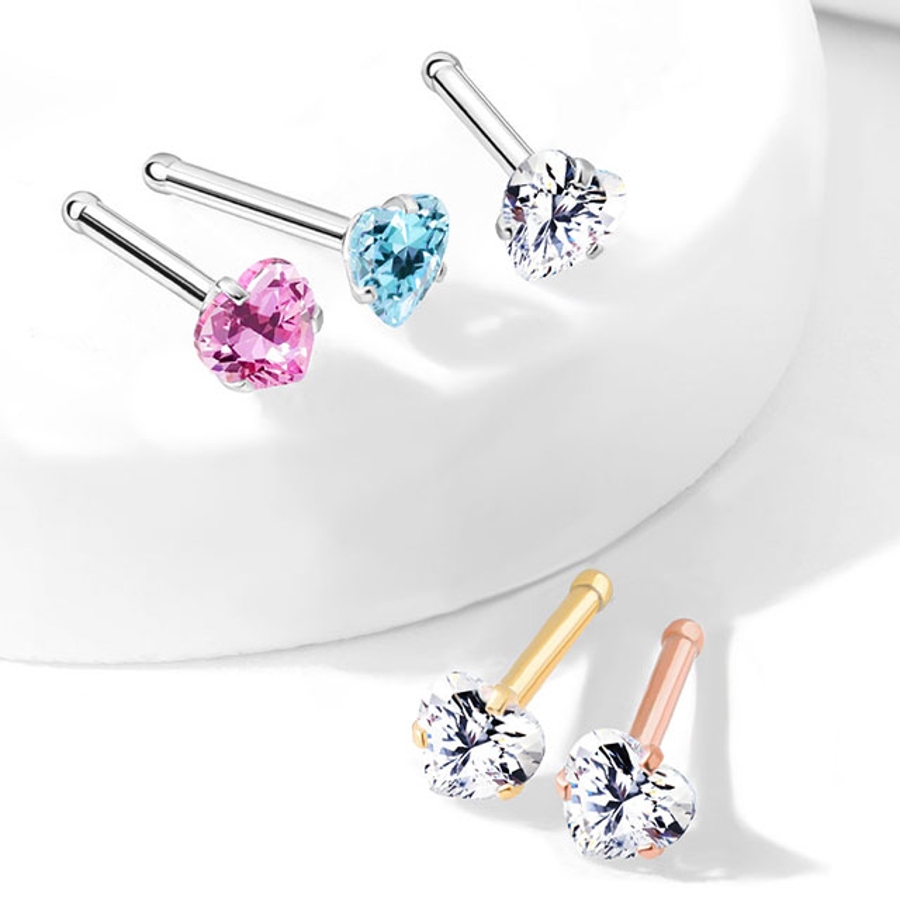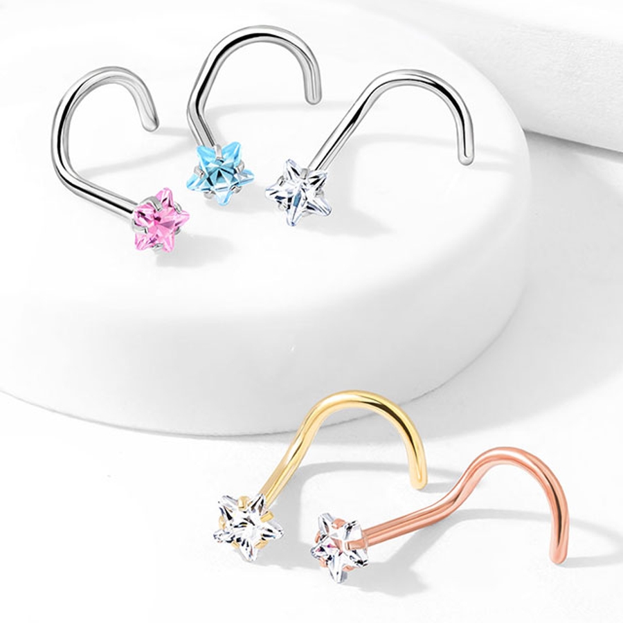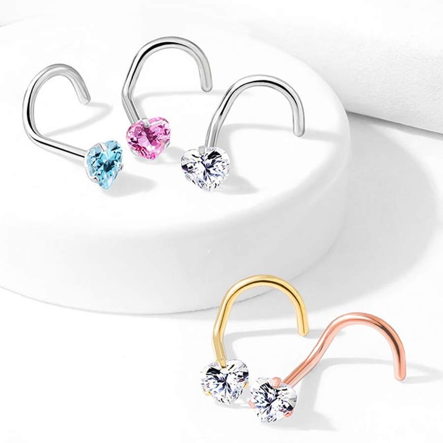 CZジュエル ラウンド ハート スクエア スター ノーズスクリュー/ノーズピン 20G