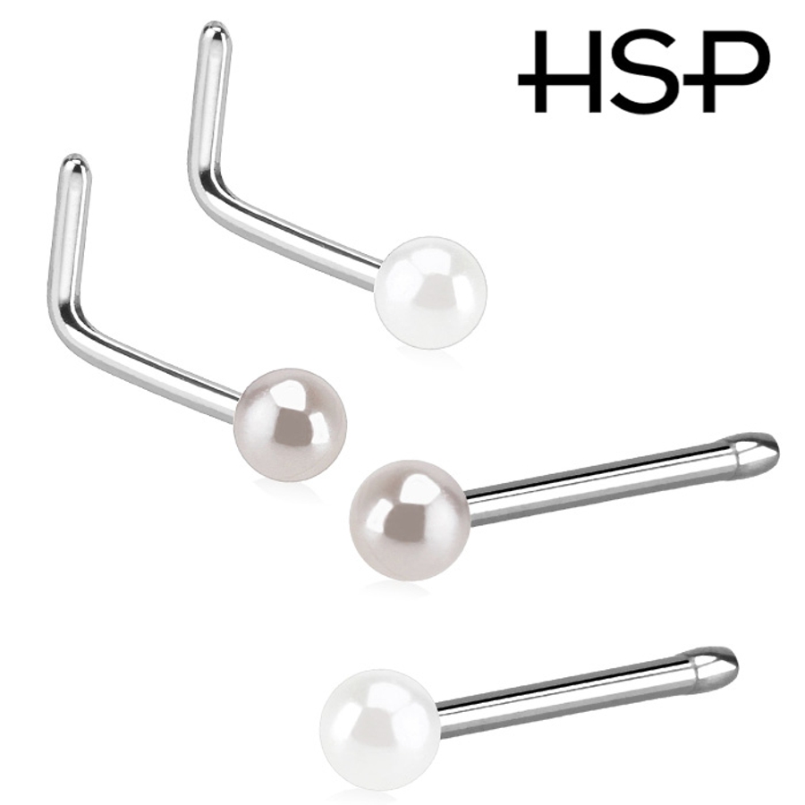 鼻ピアス パールコーティングボール ベンドノーズスタッド&ノーズピン