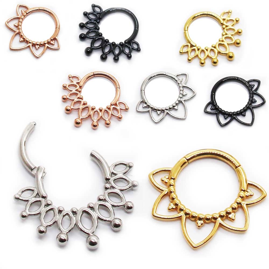 ワンタッチで装着可能なセグメントリングはボディピアスの着脱が苦手な方でも安心。