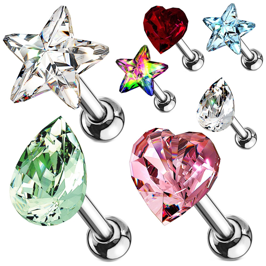 定番人気のハート、スター、ティアドロップモチーフのボディピアス。