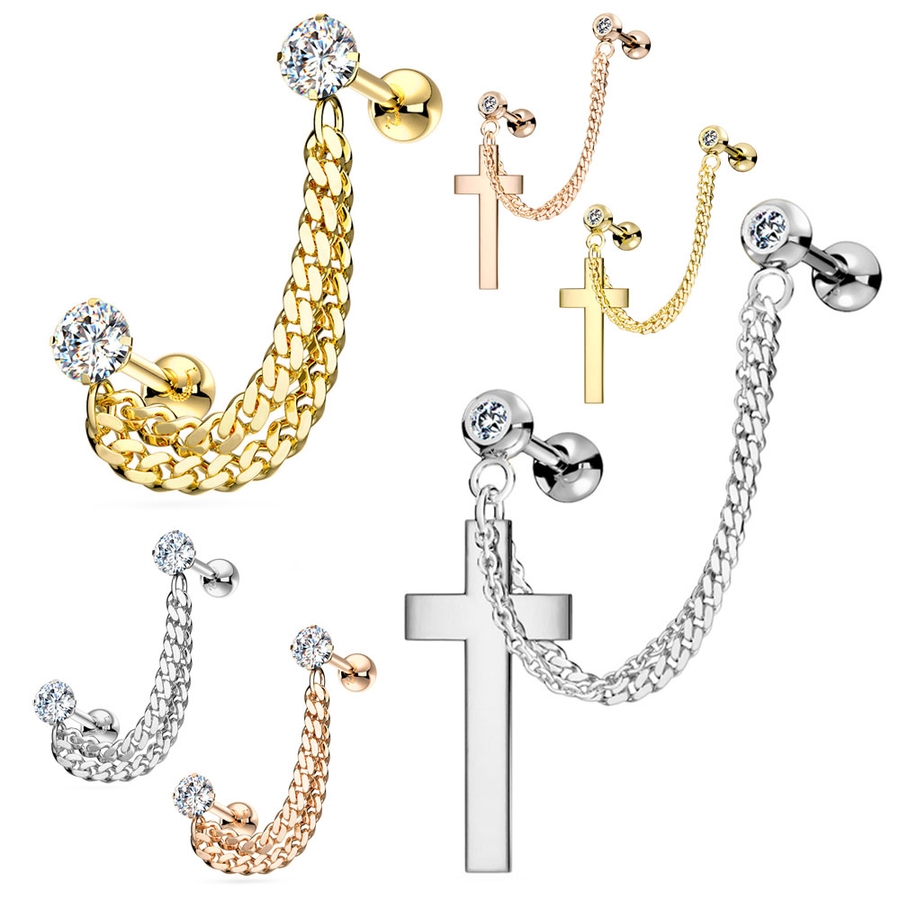 ボディピアス ダブルチェーン ジュエル&クロス
