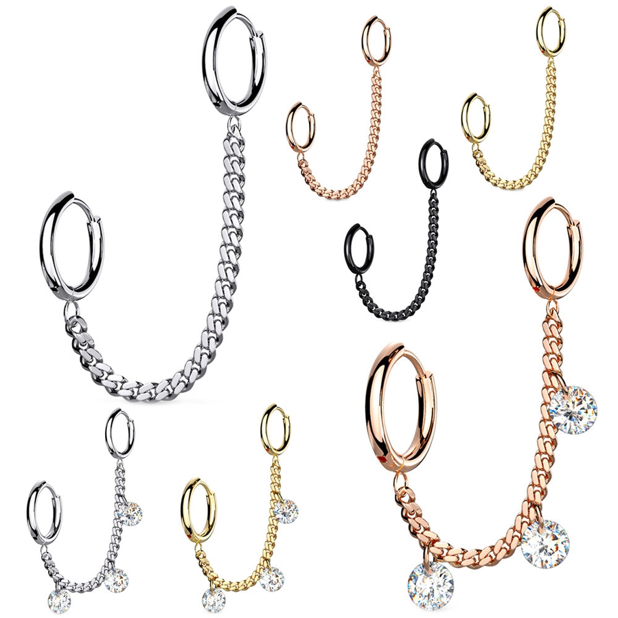チェーン&ジュエル ラウンド クリッカーフープピアス 18G