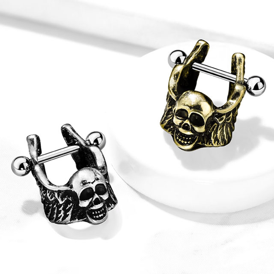 ボディピアス コイルスネーク&スカルウィング イヤーカフ