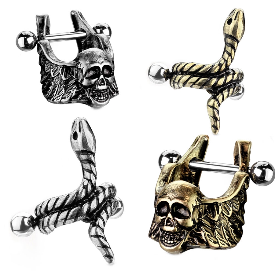 コイルスネーク&スカルウィング イヤーカフ ストレートバーベル 16G