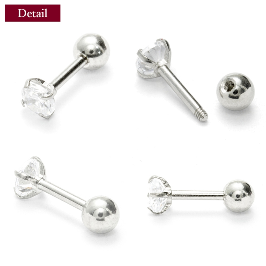 CZ 2~4mm 立爪ジュエル ストレートバーベル 16G