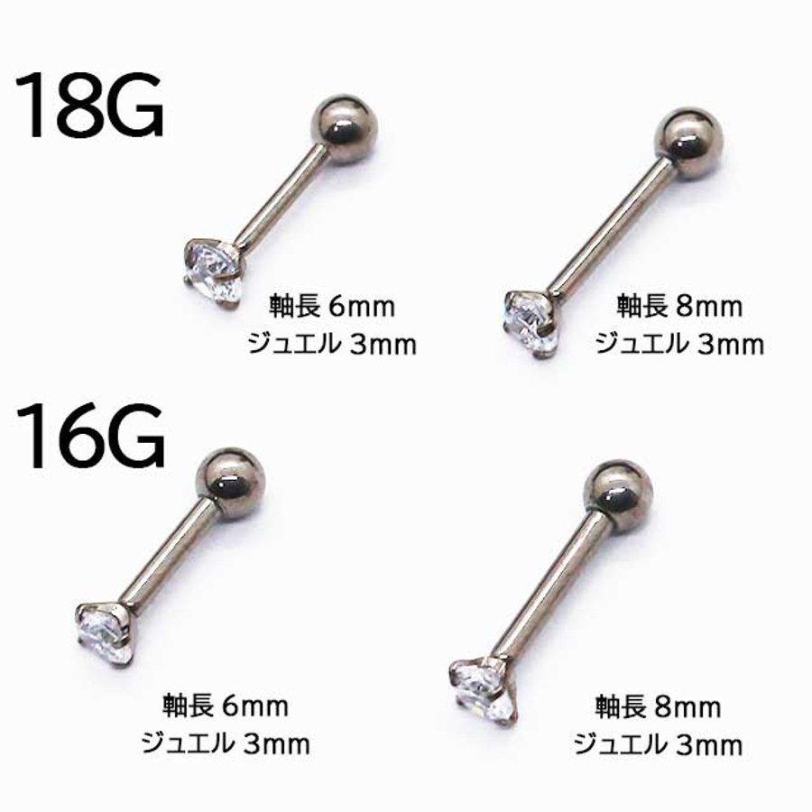 CZジュエル インプラントグレードチタン プッシュストレートバーベル 16G 18G