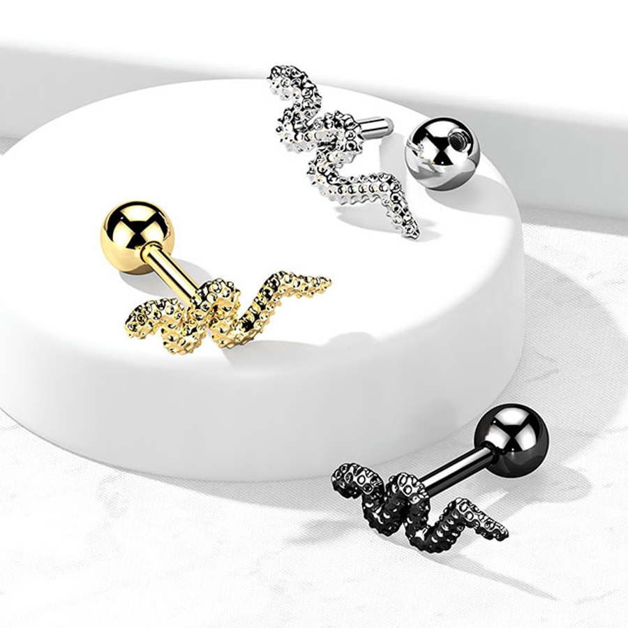 小さな蛇モチーフがカッコかわいいボディピアス。