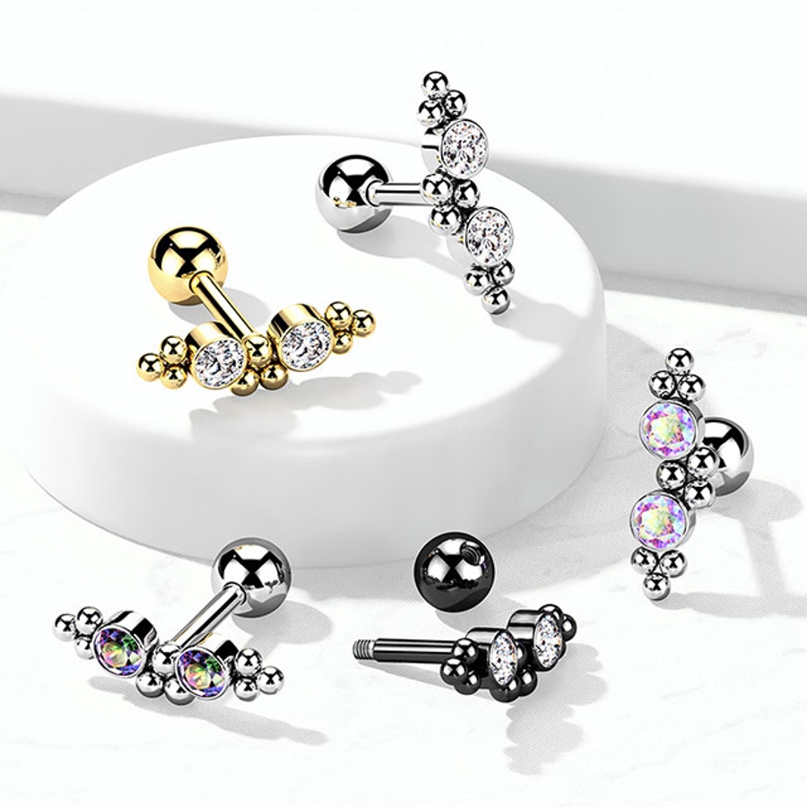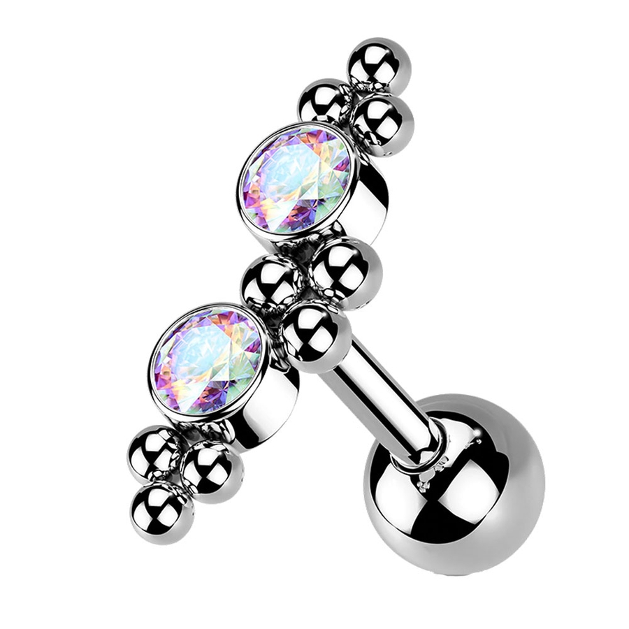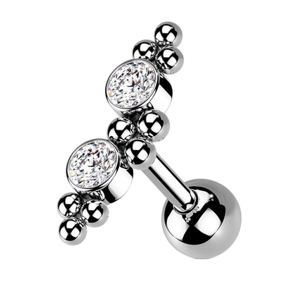 ボディピアス CZ 2ジュエル&ボールクラスター
