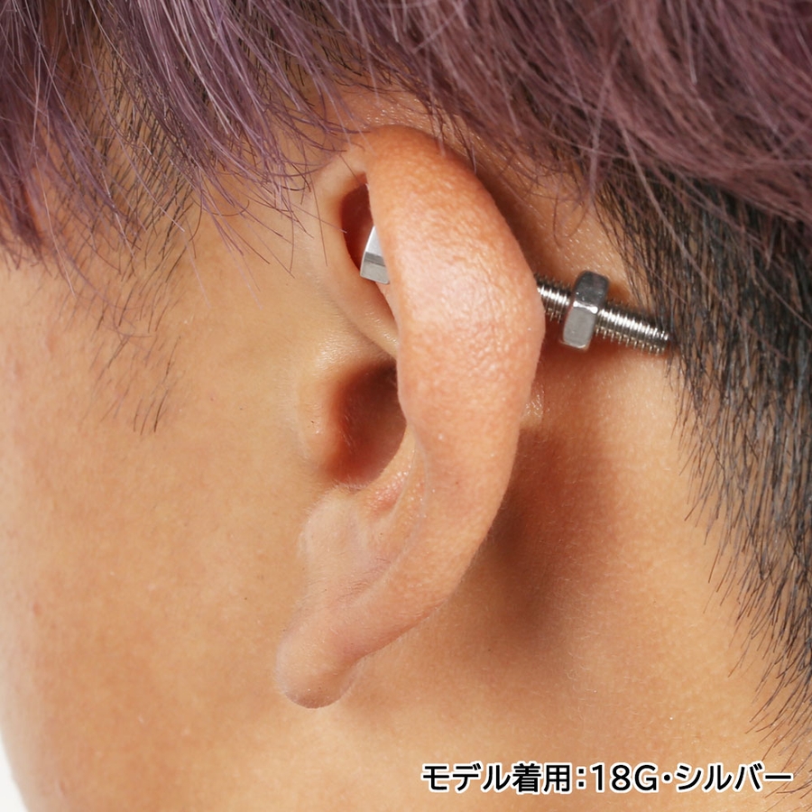 個性的なナットとボルトの軟骨ピアス。