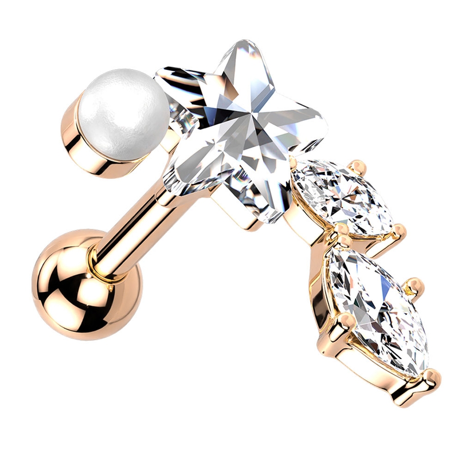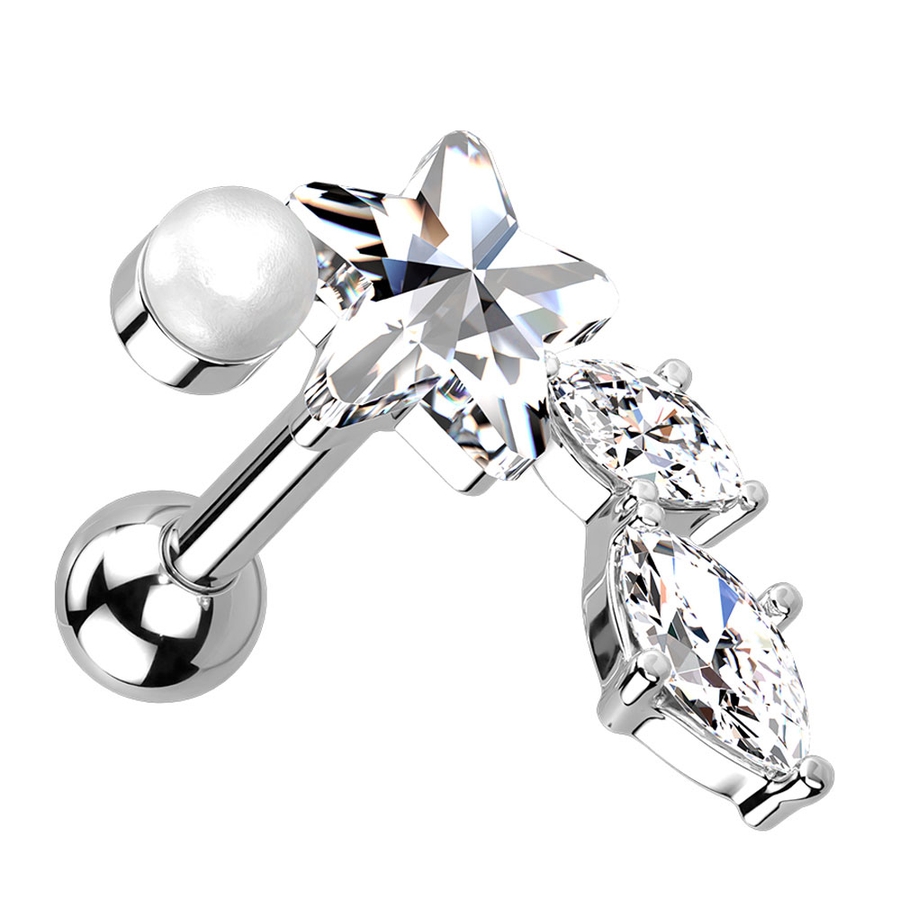 軸・ボール:316Lサージカルスチールチャーム:真鍮 ストーン:キュービックジルコニア、合成パール