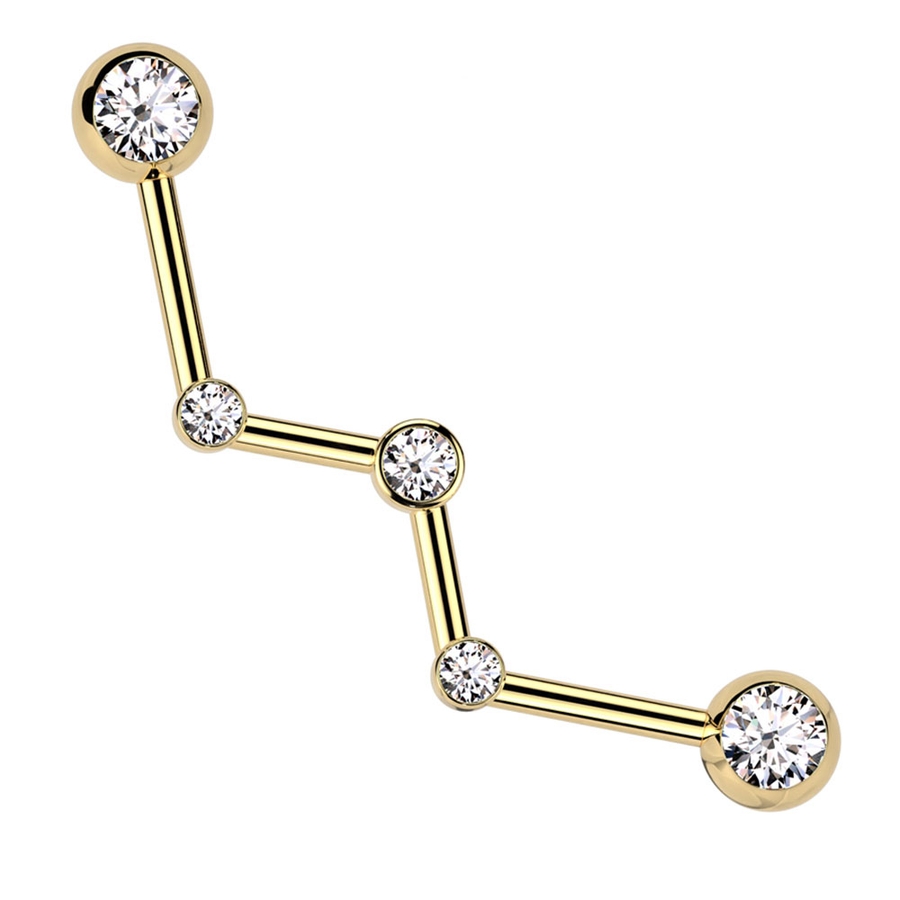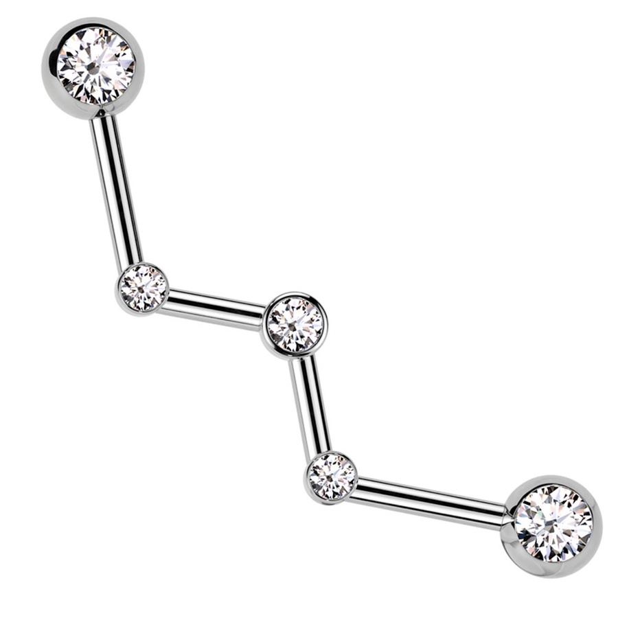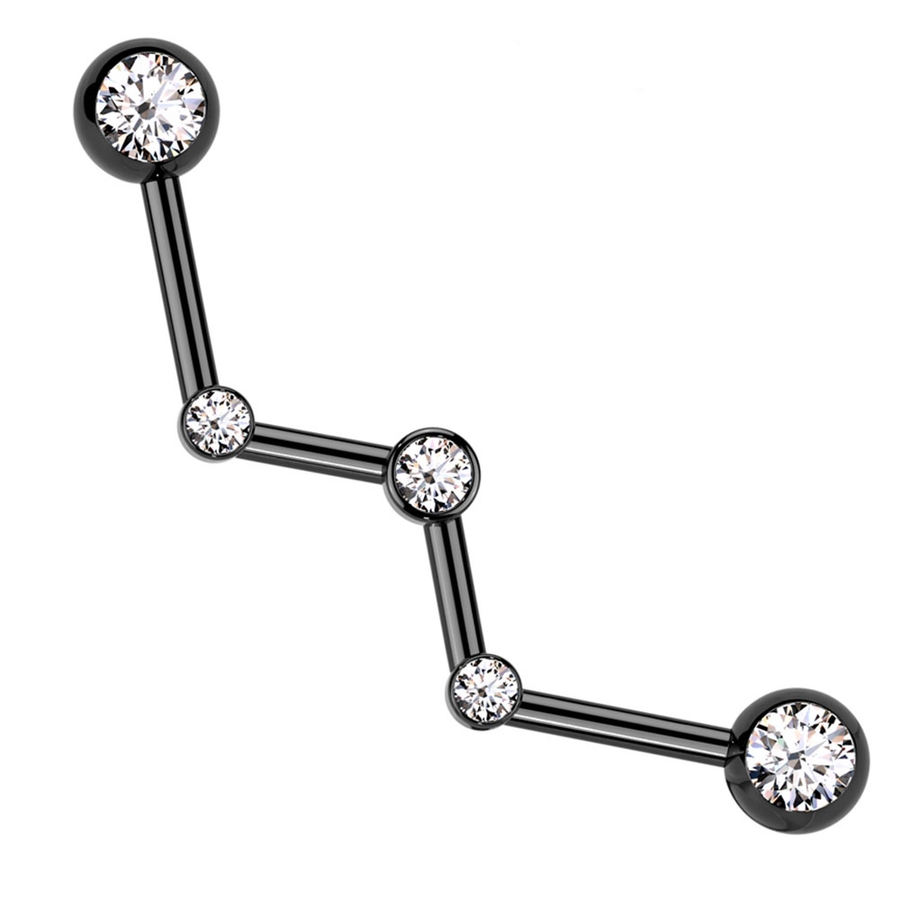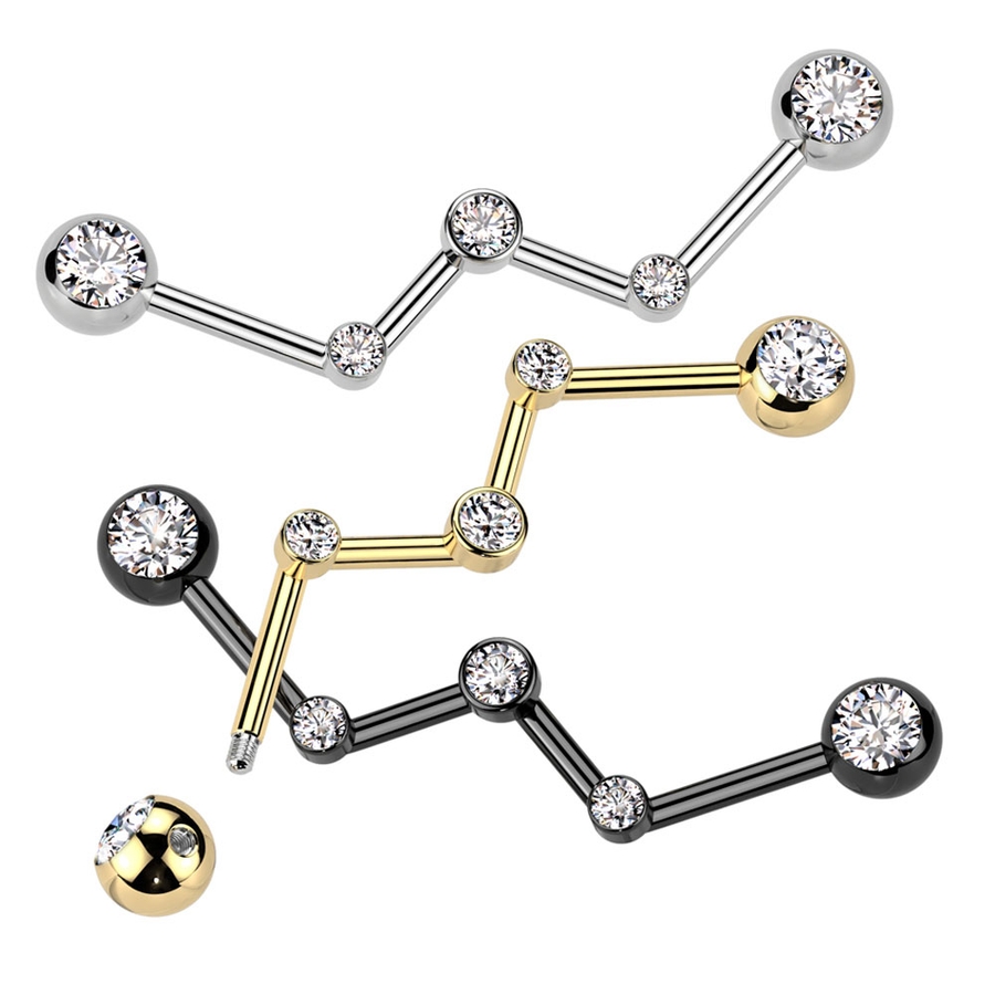 インダストリアル ジグザグ フェイスフォワード ジュエル ストレートバーベル 14G