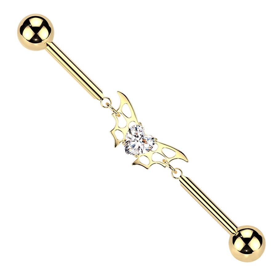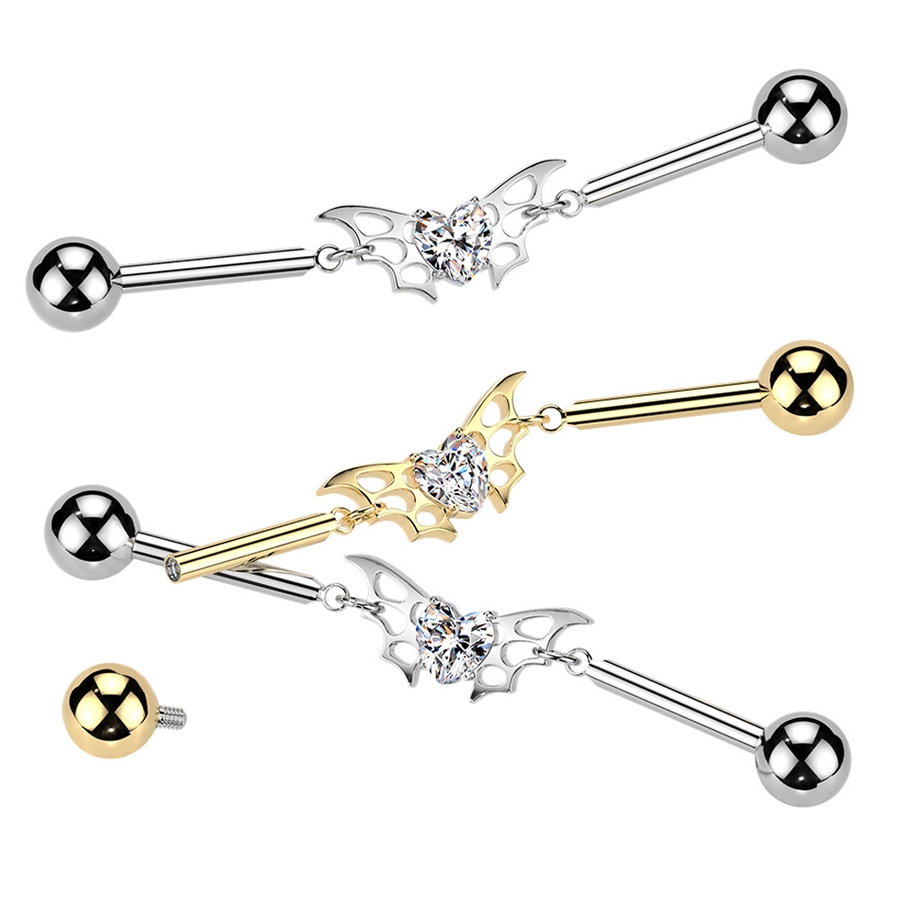 チタン インダストリアル バッドウィング ハートジュエル ストレートバーベル 14G
