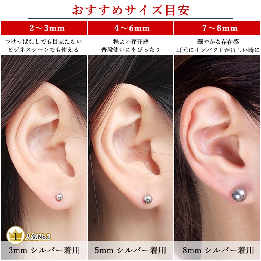 2mmから8mmまでの大きさから選べるボールピアス。