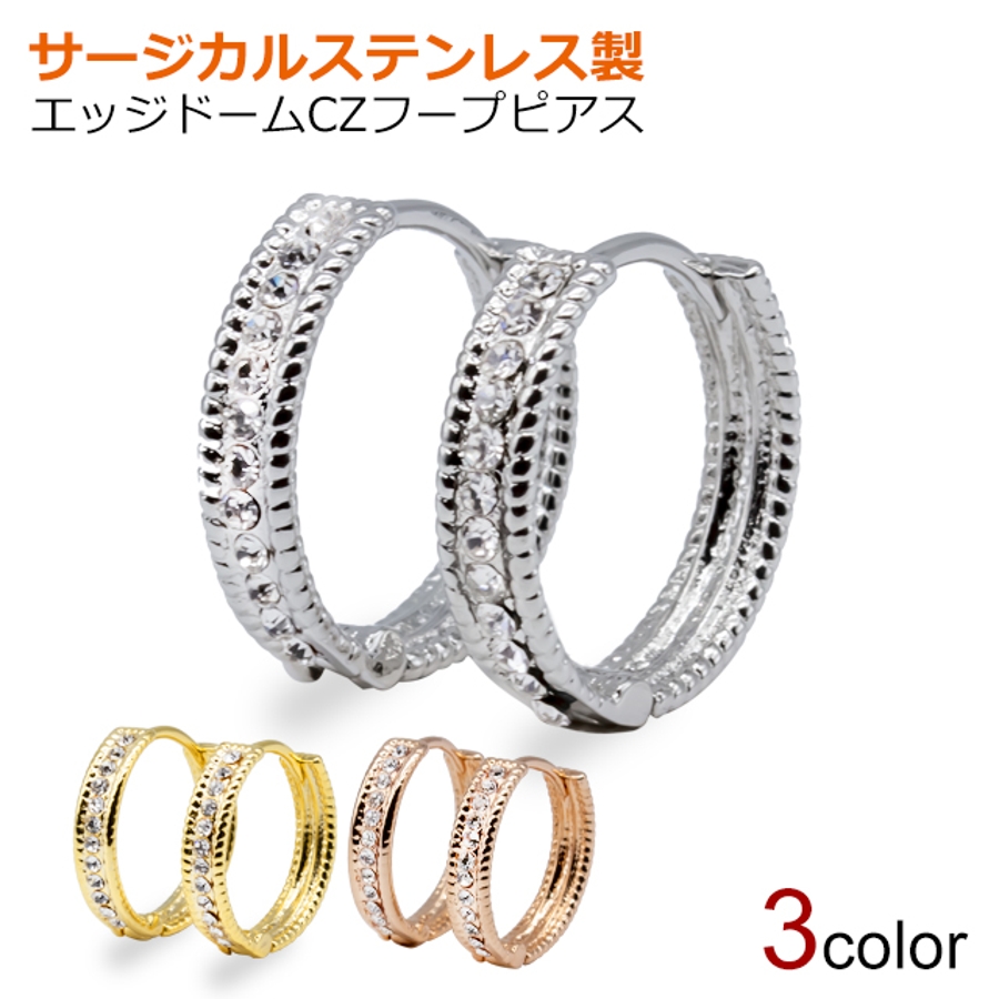 316Lステンレス 20G エッジドームCZ フープピアス 1ペア
