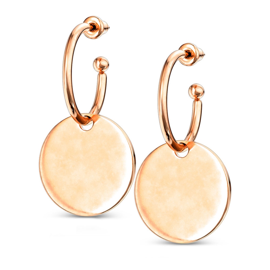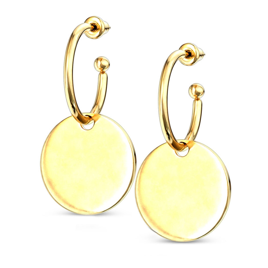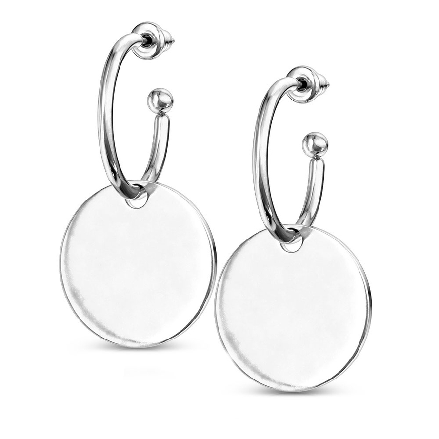 ラウンドプレートダングル ステンレスフープスタッドピアス (1ペア)