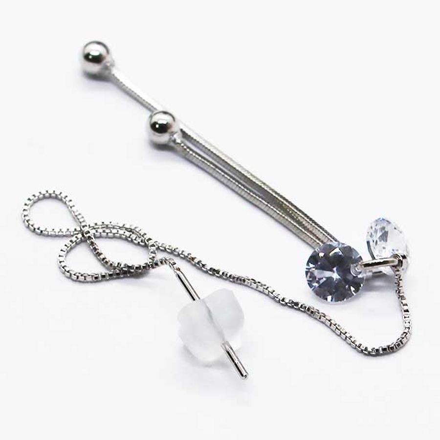 CZダングリングインフィニティ ステンレス スタッド・チェーンピアス 1ペア