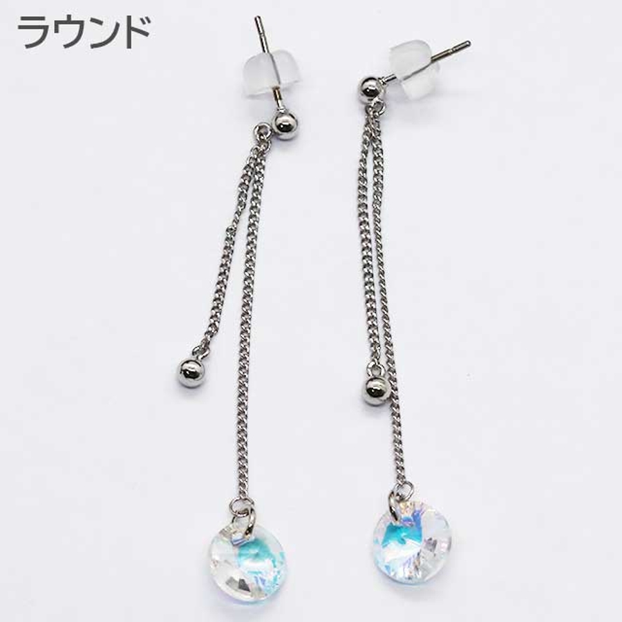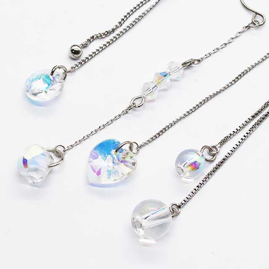 チェーン&イリデセントビーズ ステンレスフックピアス 1ペア