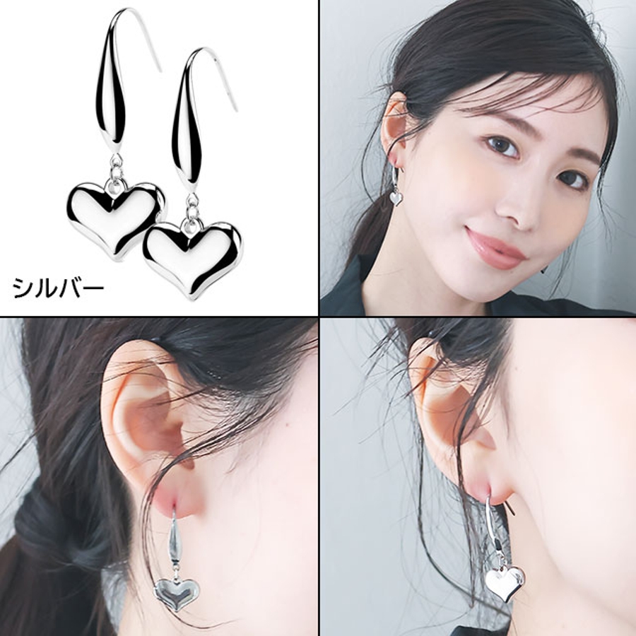 ハートダングル ステンレスフックピアス 1ペア