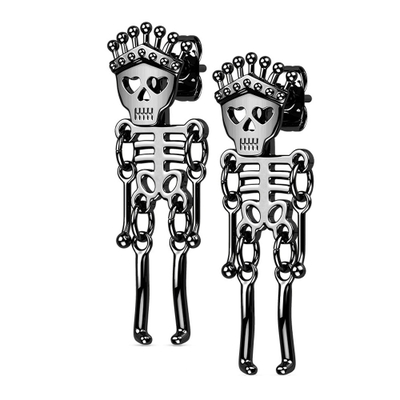 スケルトン スカル ダングル ステンレスピアス 1ペア
