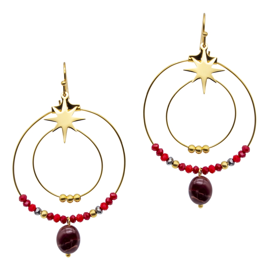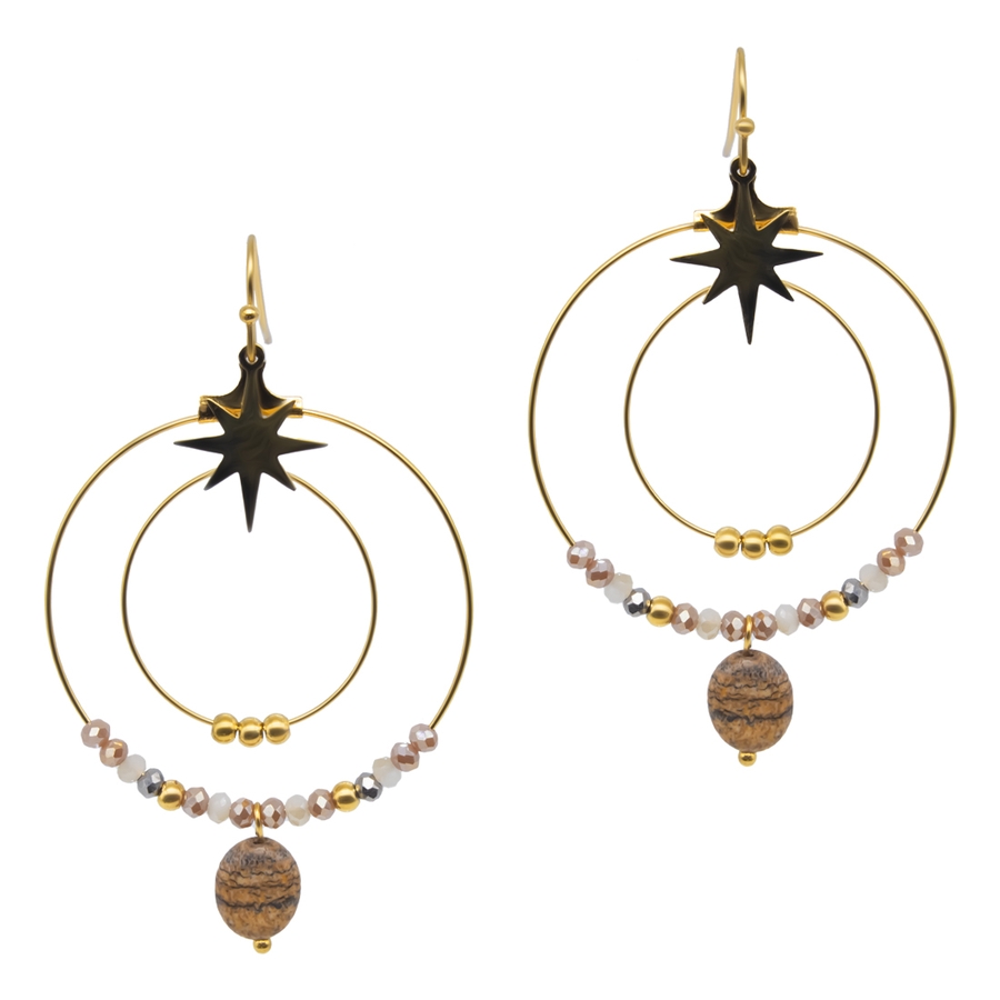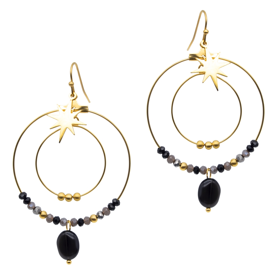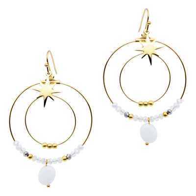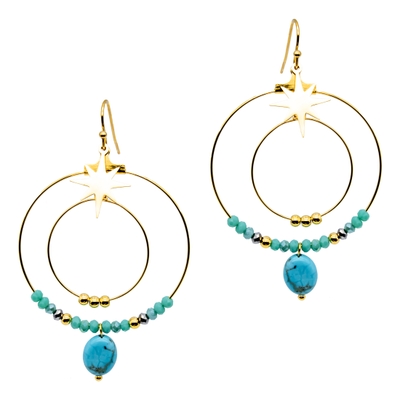 ゴールドフープ ストーン ステンレスフックピアス 1ペア