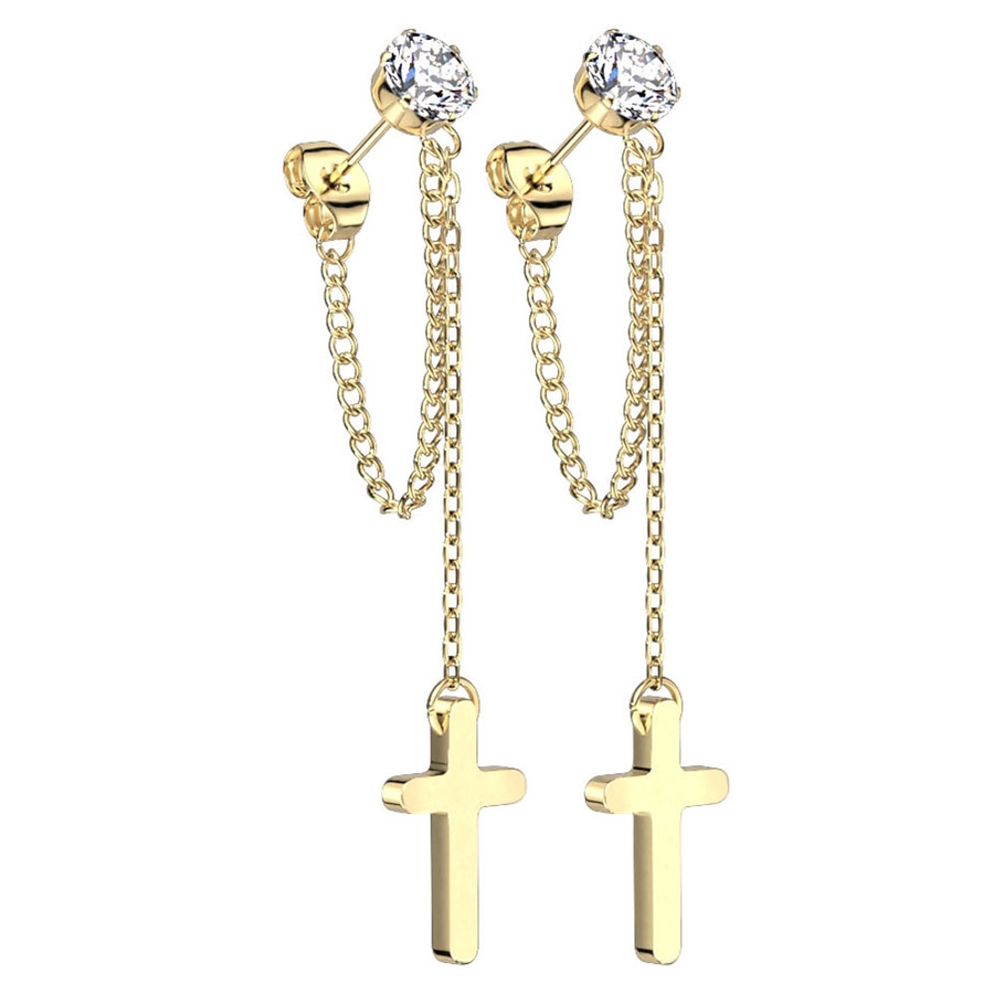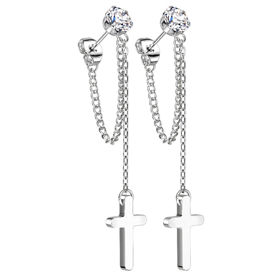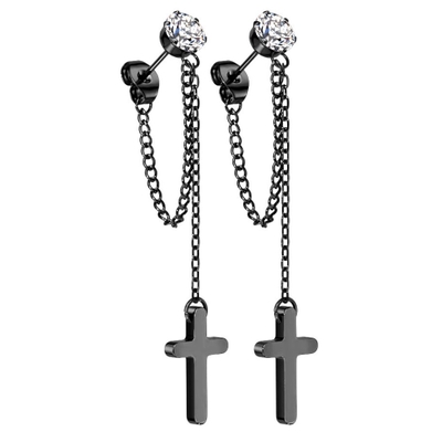 人気のクロスモチーフとチェーンの付いたステンレス製ピアス。