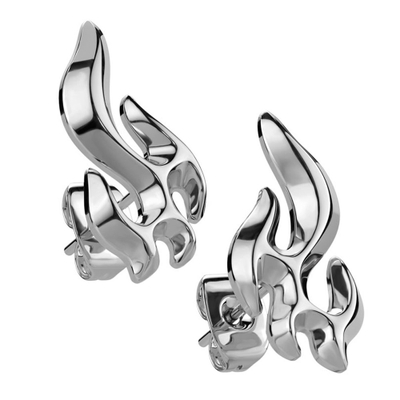 炎をモチーフにしたおしゃれなステンレス製スタッドピアス。