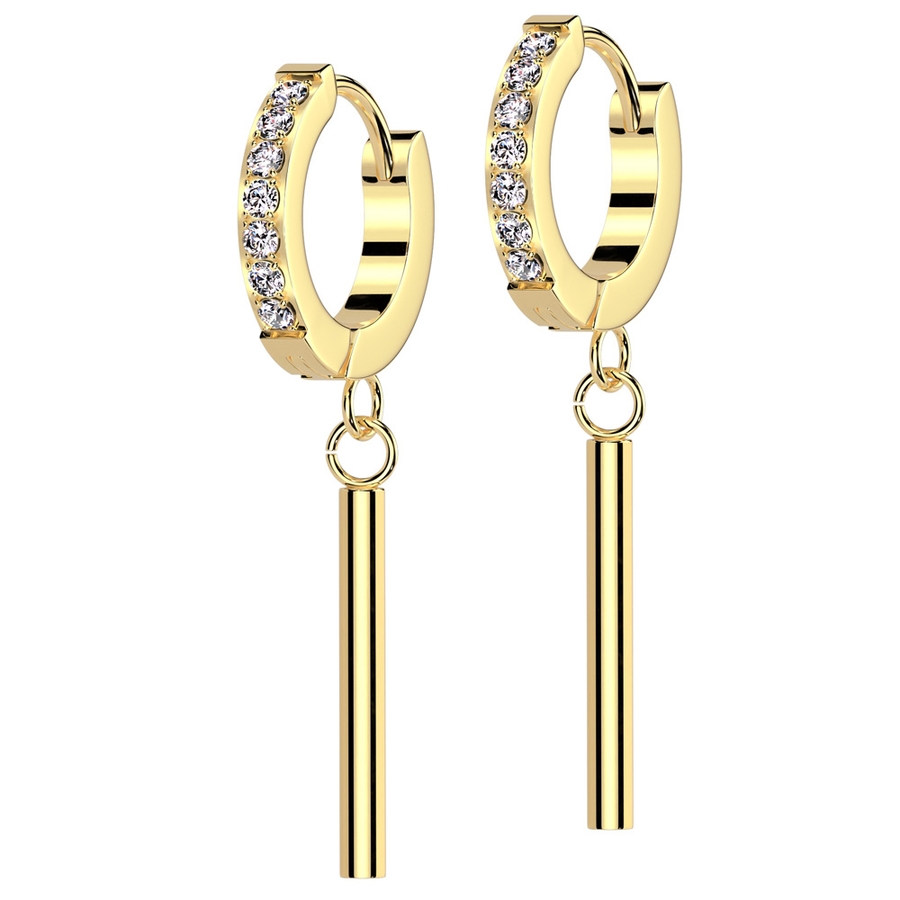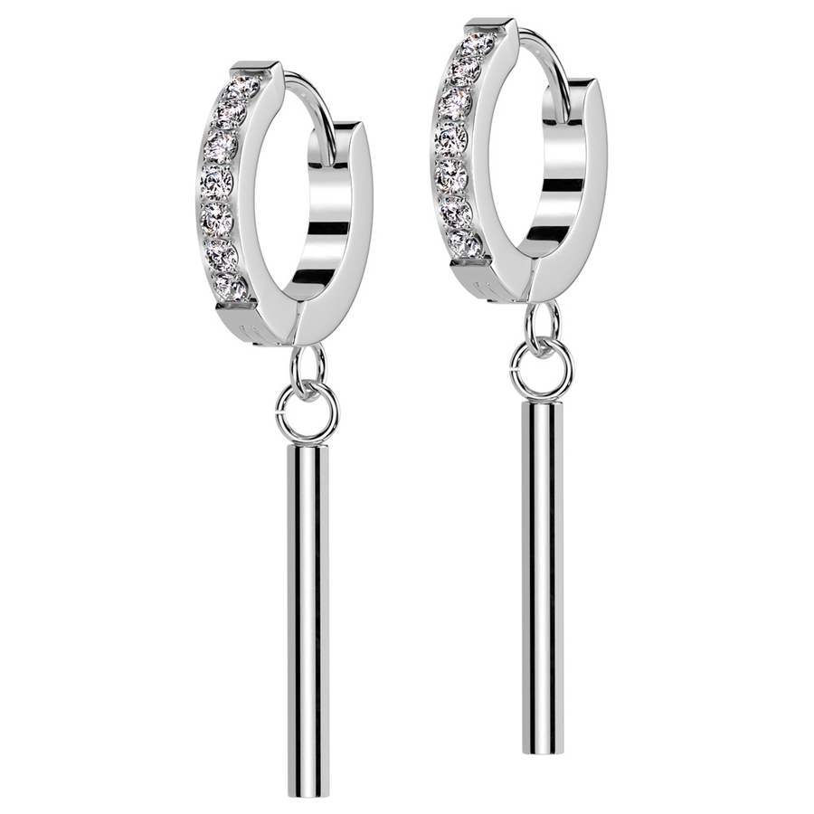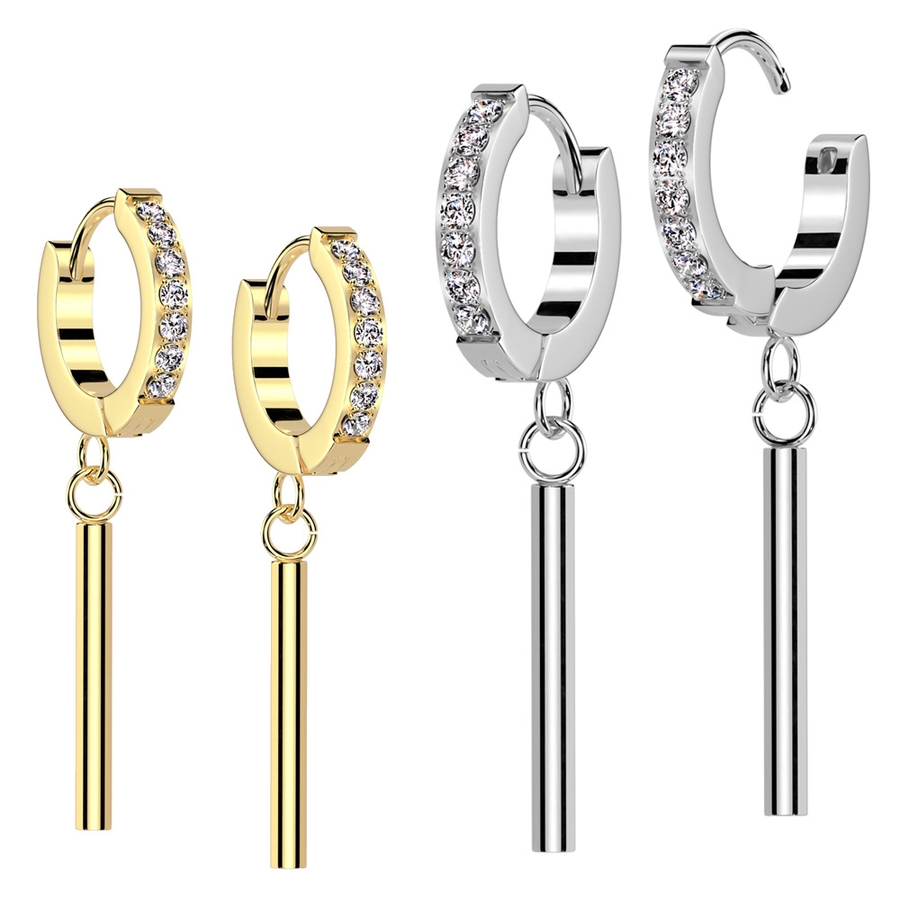 ジュエルリング バー CZ ステンレス フープピアス 1ペア