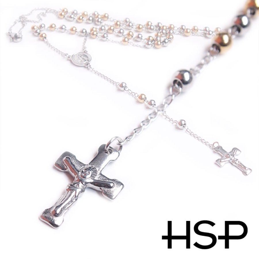 316Lサージカルステンレス マリアメダイ×キリスト十字 ロザリオネックレス