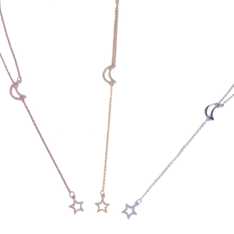 細身のチェーンに月と星が浮かんだようなデザインがお洒落で可愛い。