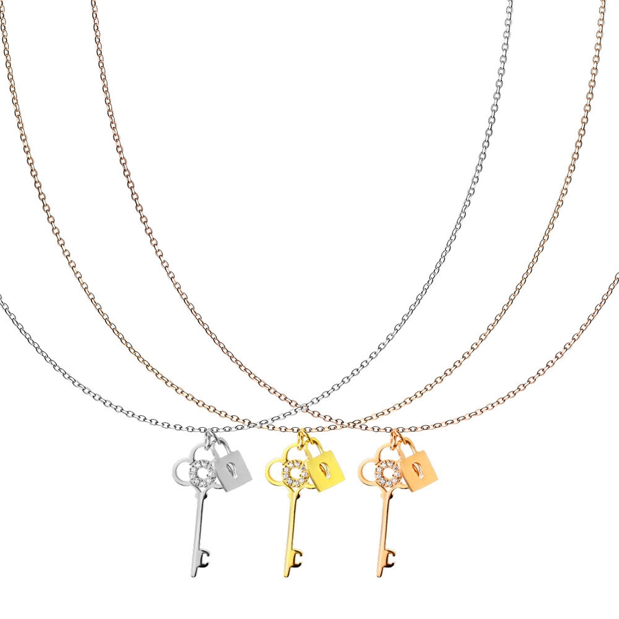 ロック&キー ジュエルCZ ステンレスネックレス