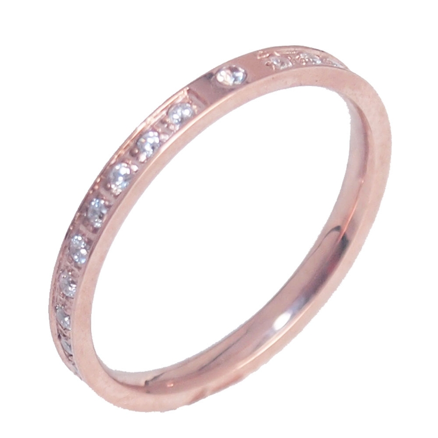 CZジュエルライン ピンクゴールドステンレスリング
