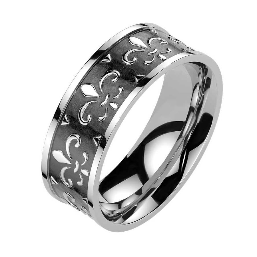 太めのデザインにユリ紋章の模様がクールなリング。