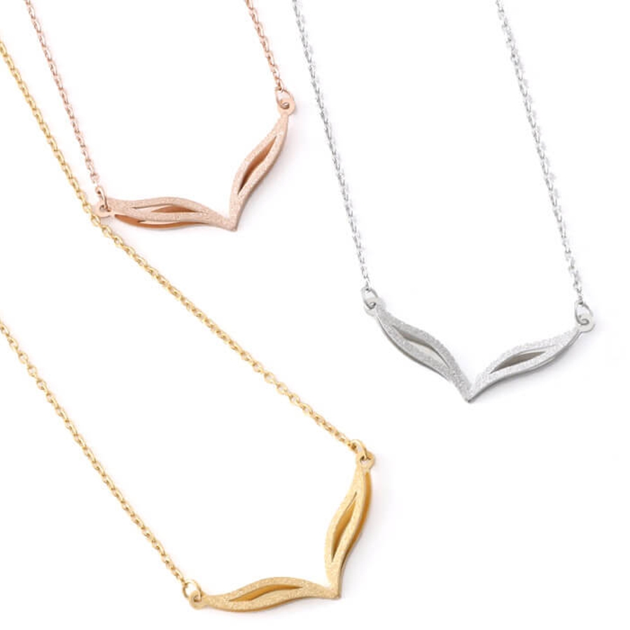 立体的な羽根のモチーフが印象的なデザインネックレス。