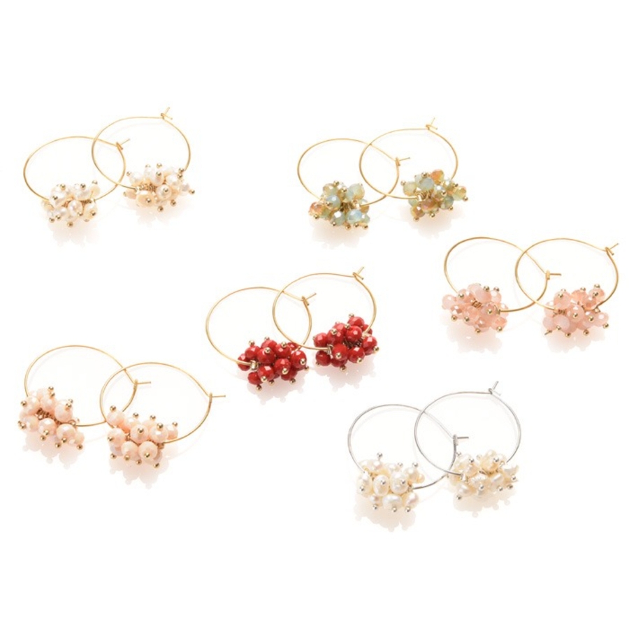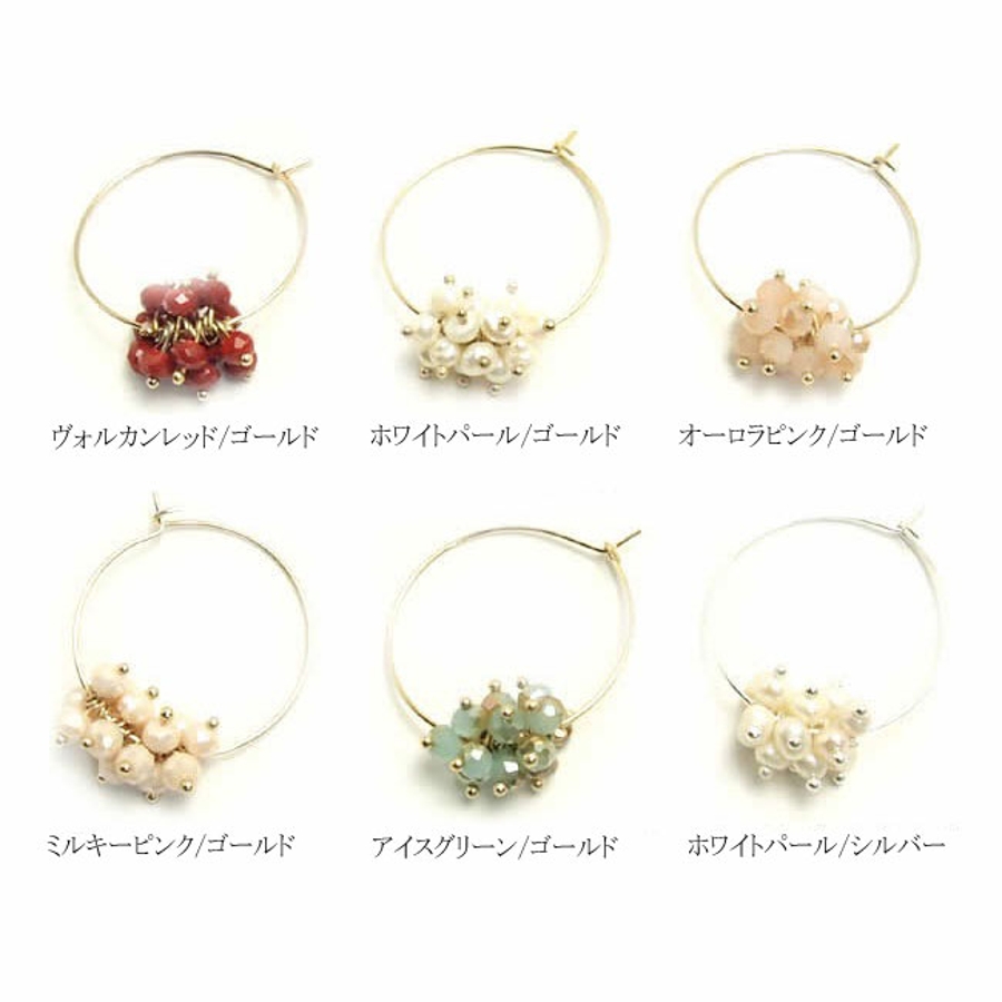 | カラー | ホワイトパール/ゴールドフープ / ミルキーピンク/ゴールドフープ / オーロラピンク/ゴールドフープ / アイスグリーン/ゴールドフープ / ヴォルカンレッド/ゴールドフープ / ホワイトパール/シルバーフープ |
