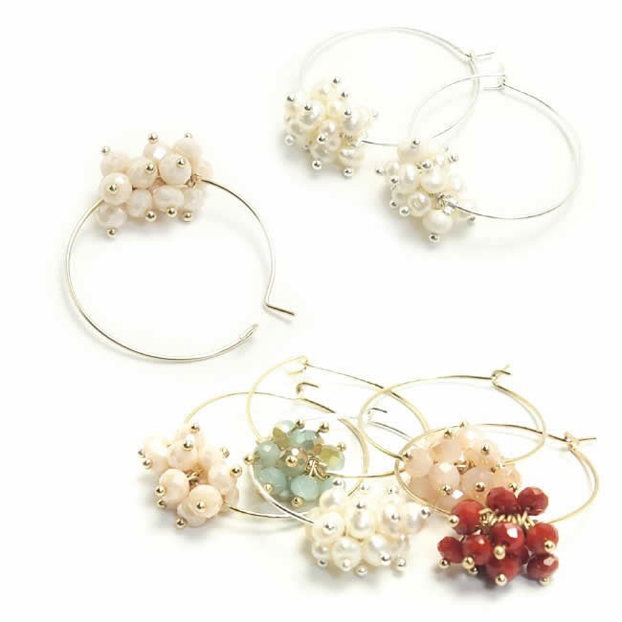 フープ部分:316Lサージカルステンレス モチーフ:淡水パール、ガラスビーズ、真鍮