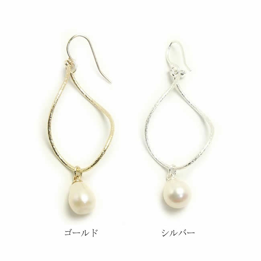 ピアス サージカルステンレス ティアドロップ淡水パール&ウォープデザインフレーム
