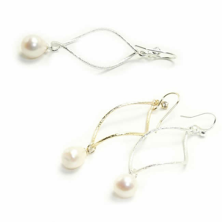 フック部分:316Lサージカルステンレス モチーフ:淡水パール、キュービックジルコニア、真鍮