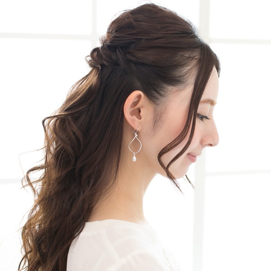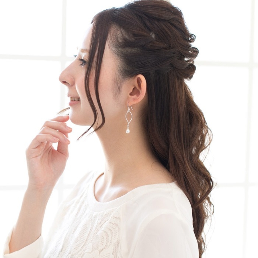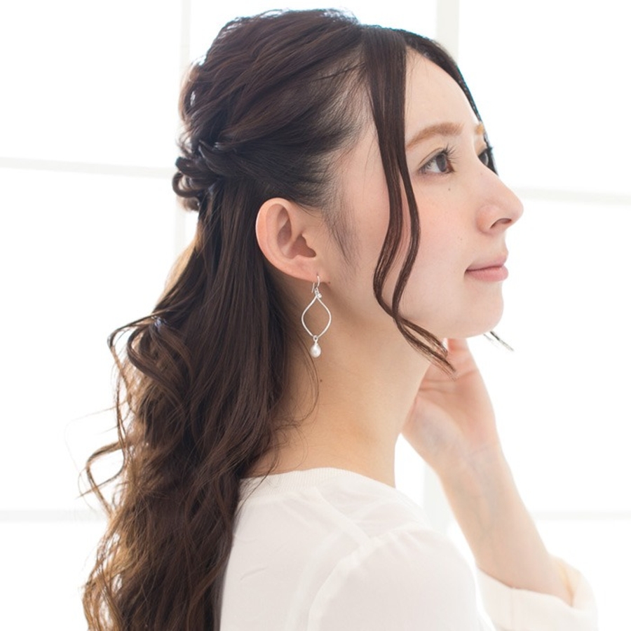 緩やかなフレームとドロップパールのコンビネーションが絶妙なピアスです。