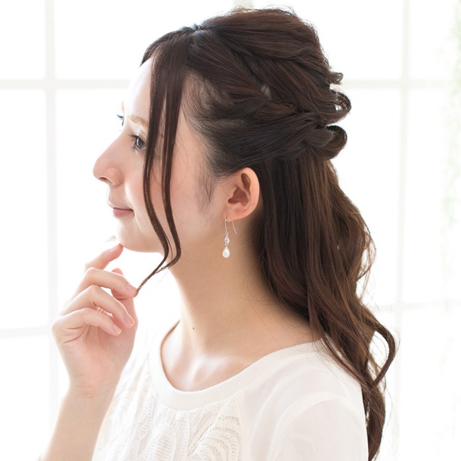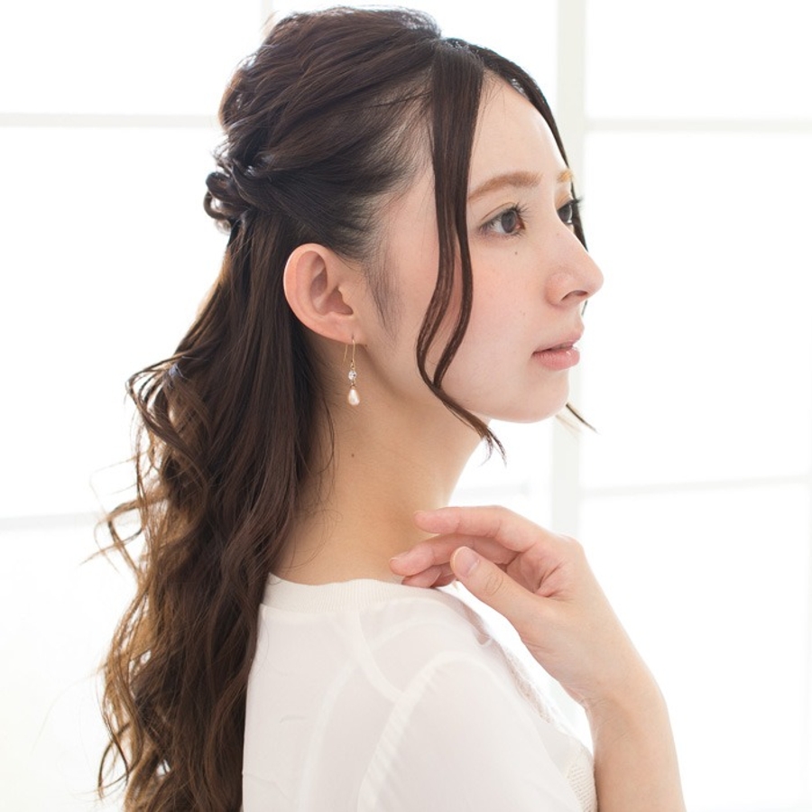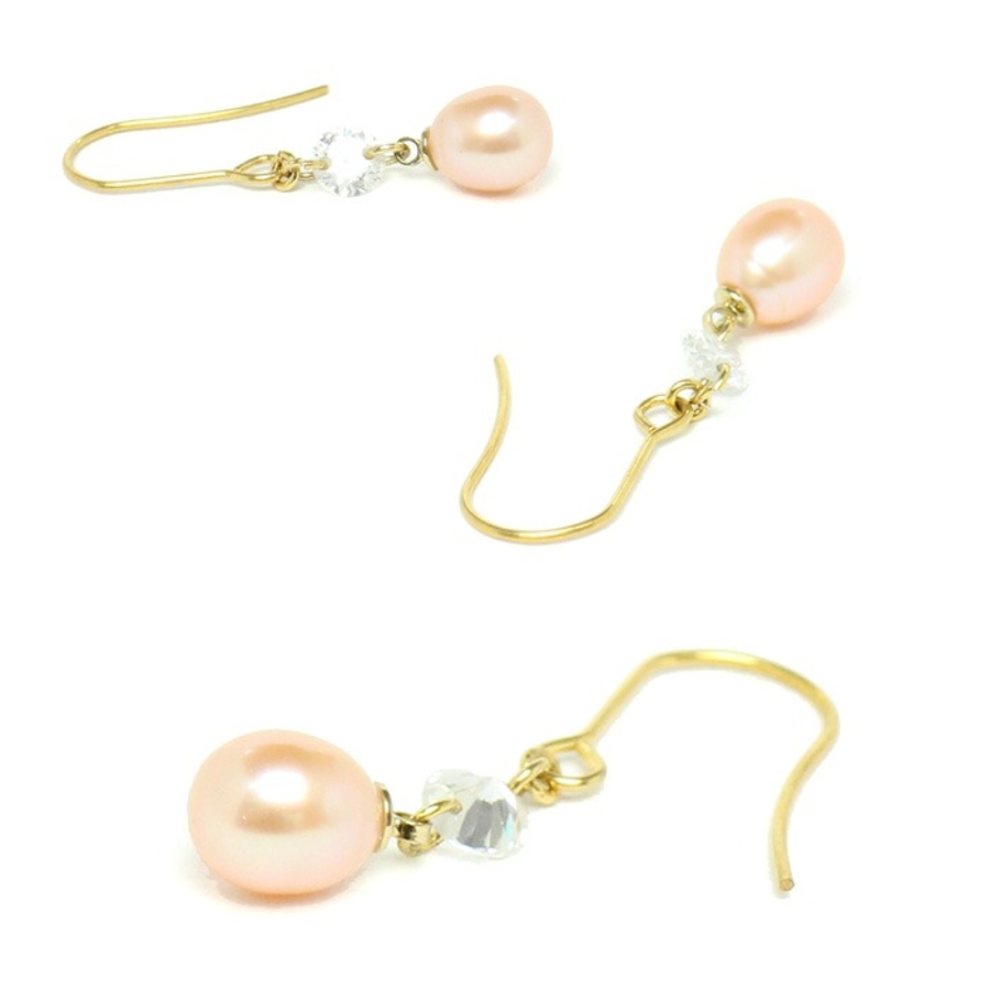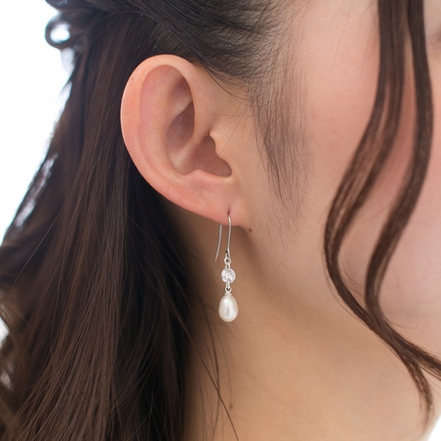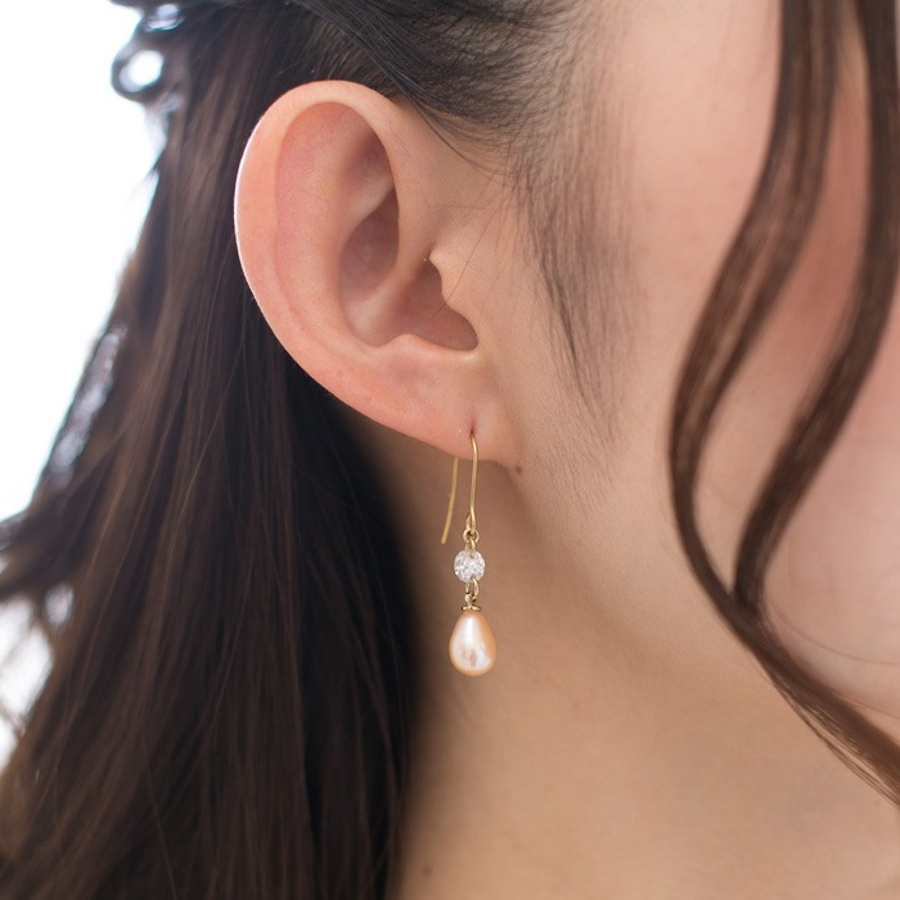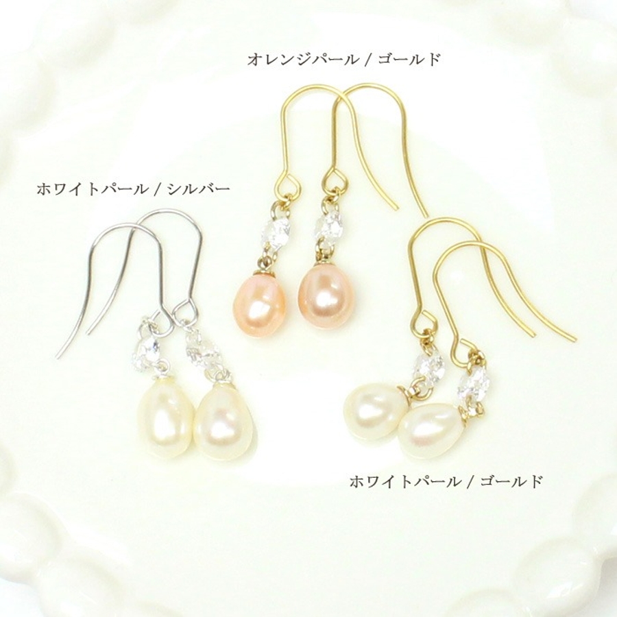 フック部分:316Lサージカルステンレス モチーフ:淡水パール、キュービックジルコニア、真鍮