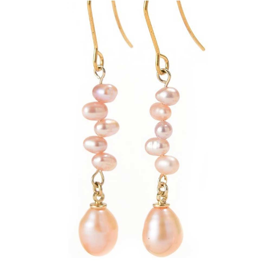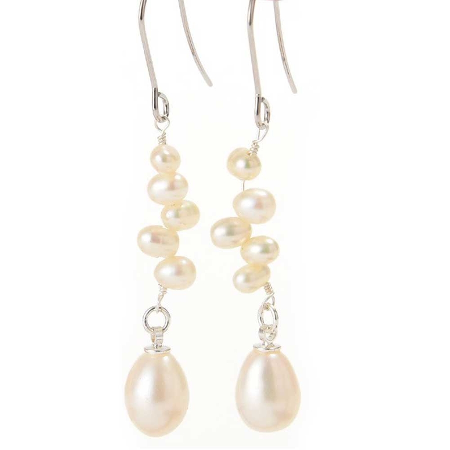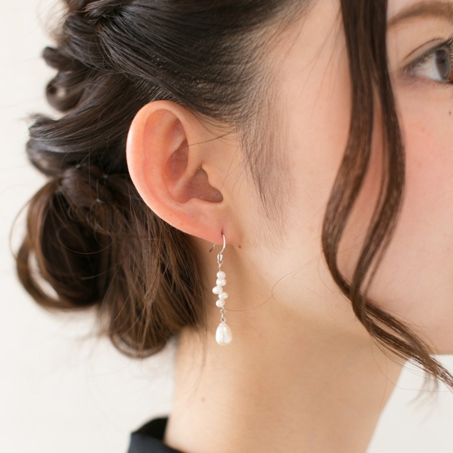 小ぶりの淡水パールを贅沢に重ねたピアス。
