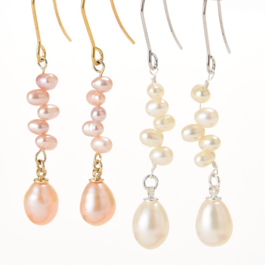ナチュラルな光沢が上品な淡水パールはホワイトとオレンジの2カラーをご用意。