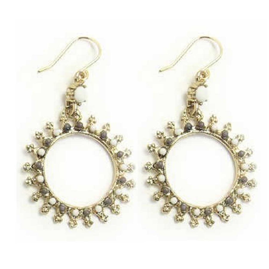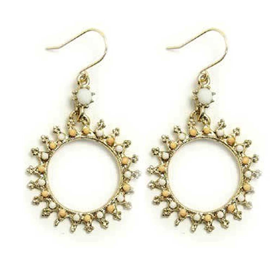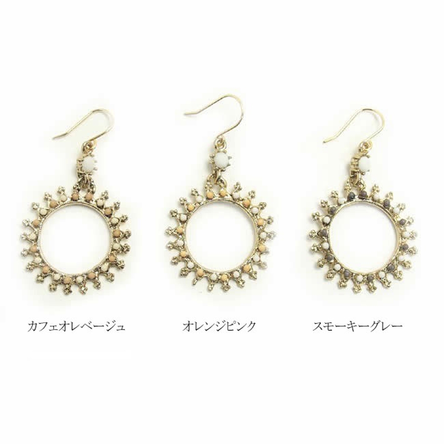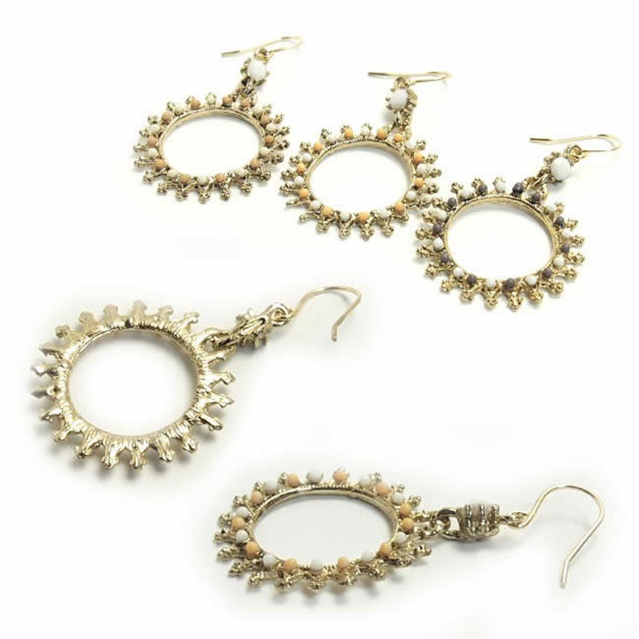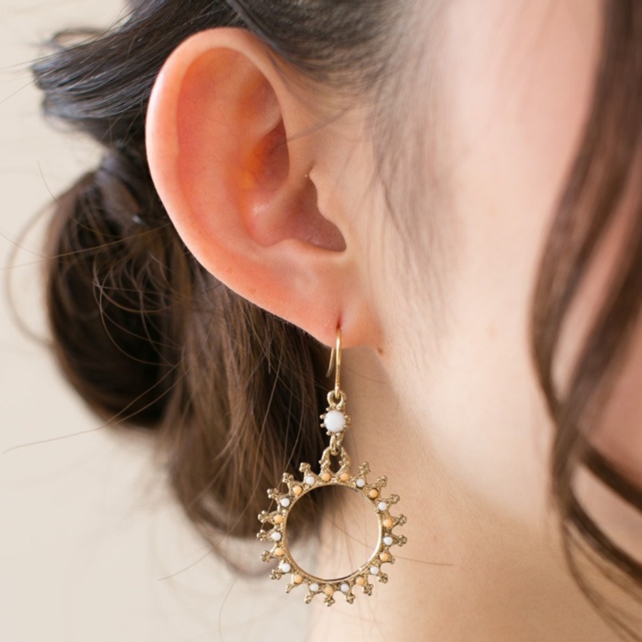 太陽のようなフレームに鮮やかなビーズを乗せたピアス。