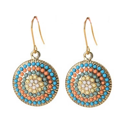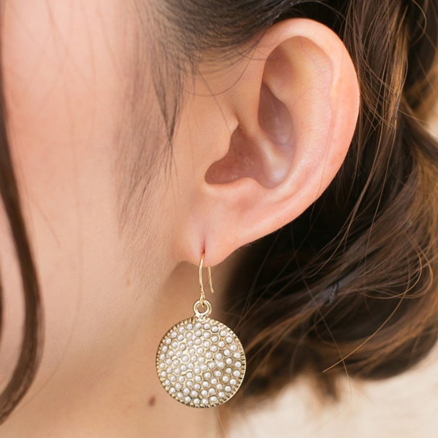 上品なパールと色鮮やかなビーズをゴールドの台座にバランスよく乗せたピアス。