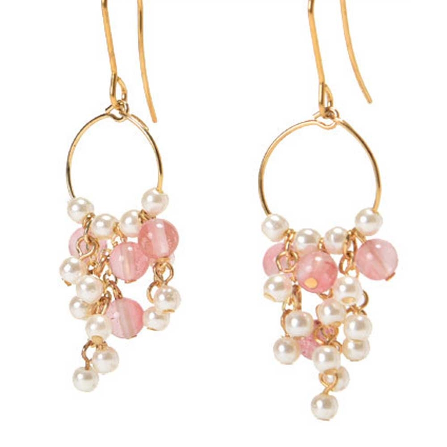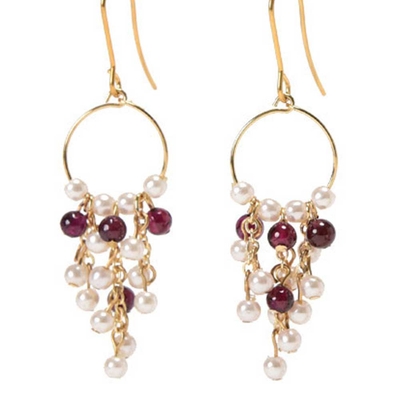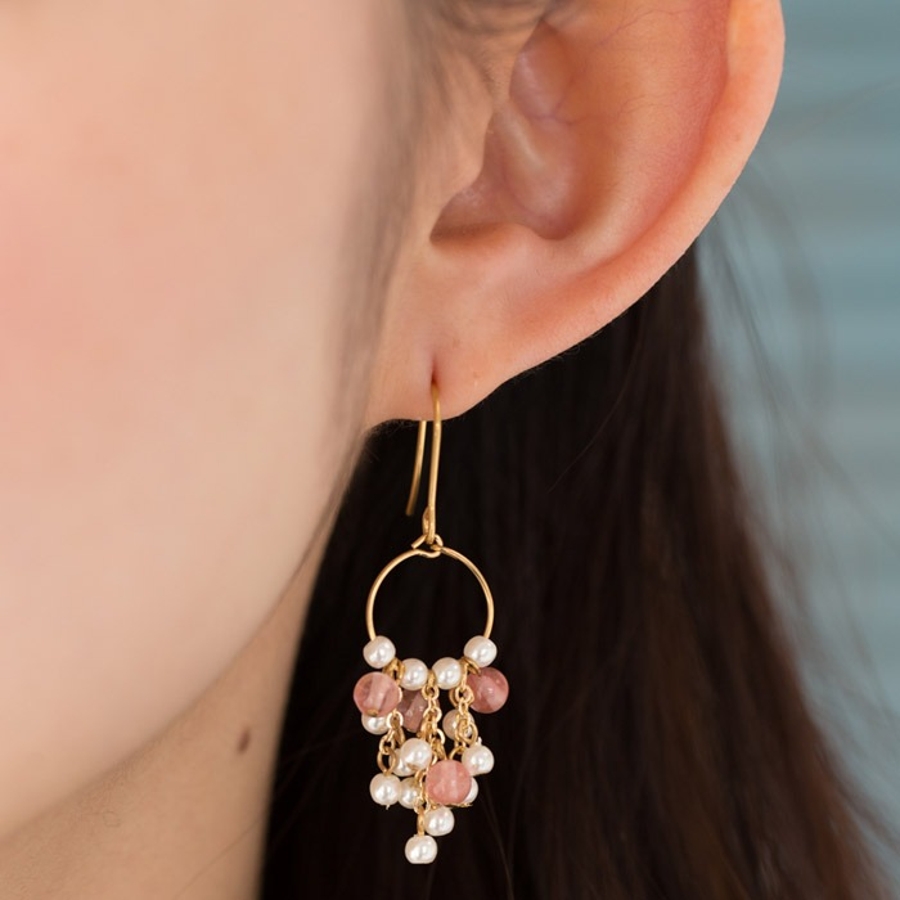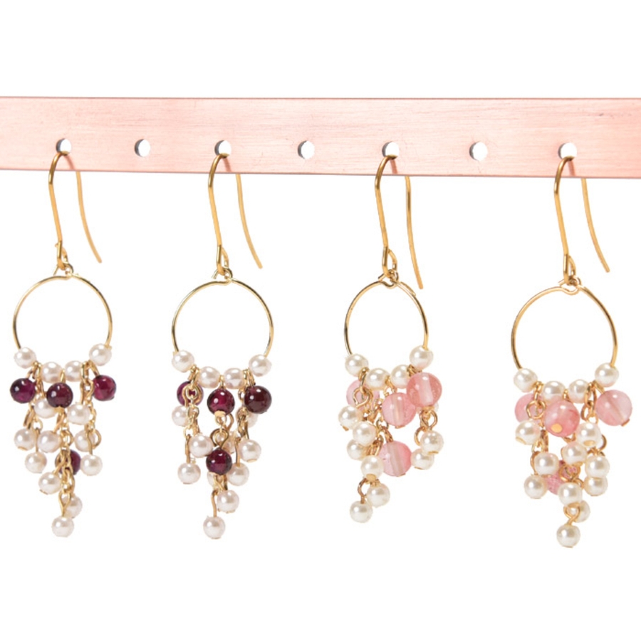 パールと天然石を贅沢にあしらったエレガントなピアス。