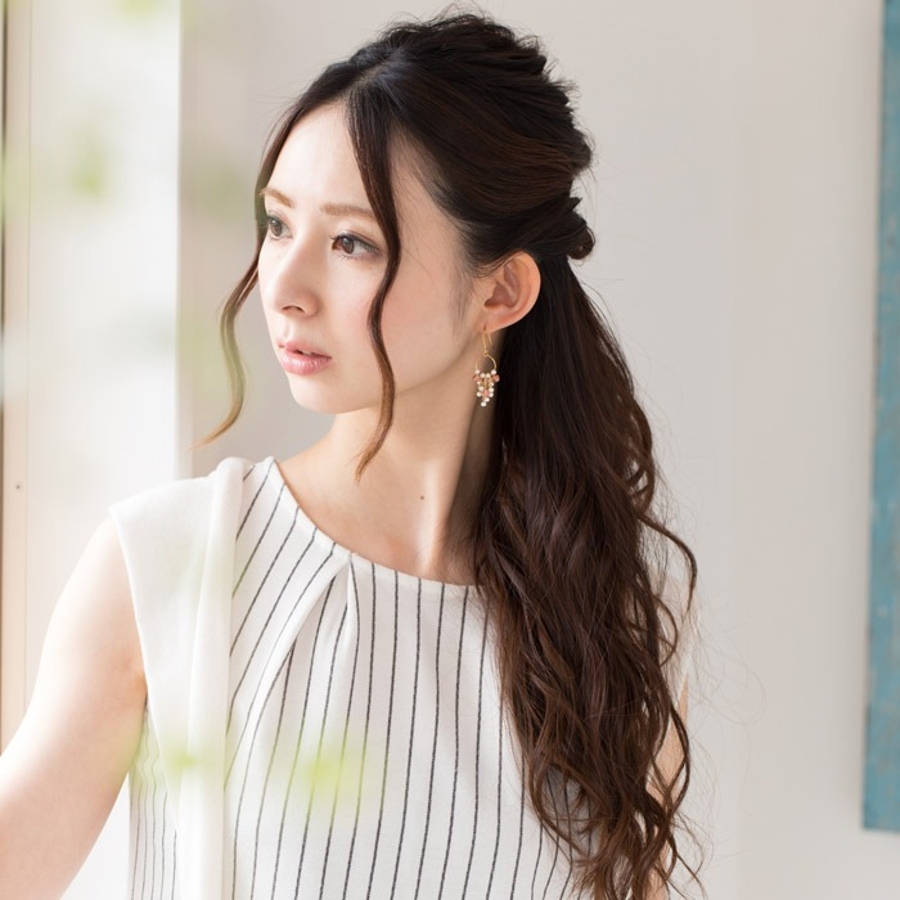 光を吸い込んだ艶やかなパールが耳元を華やかに彩ります。