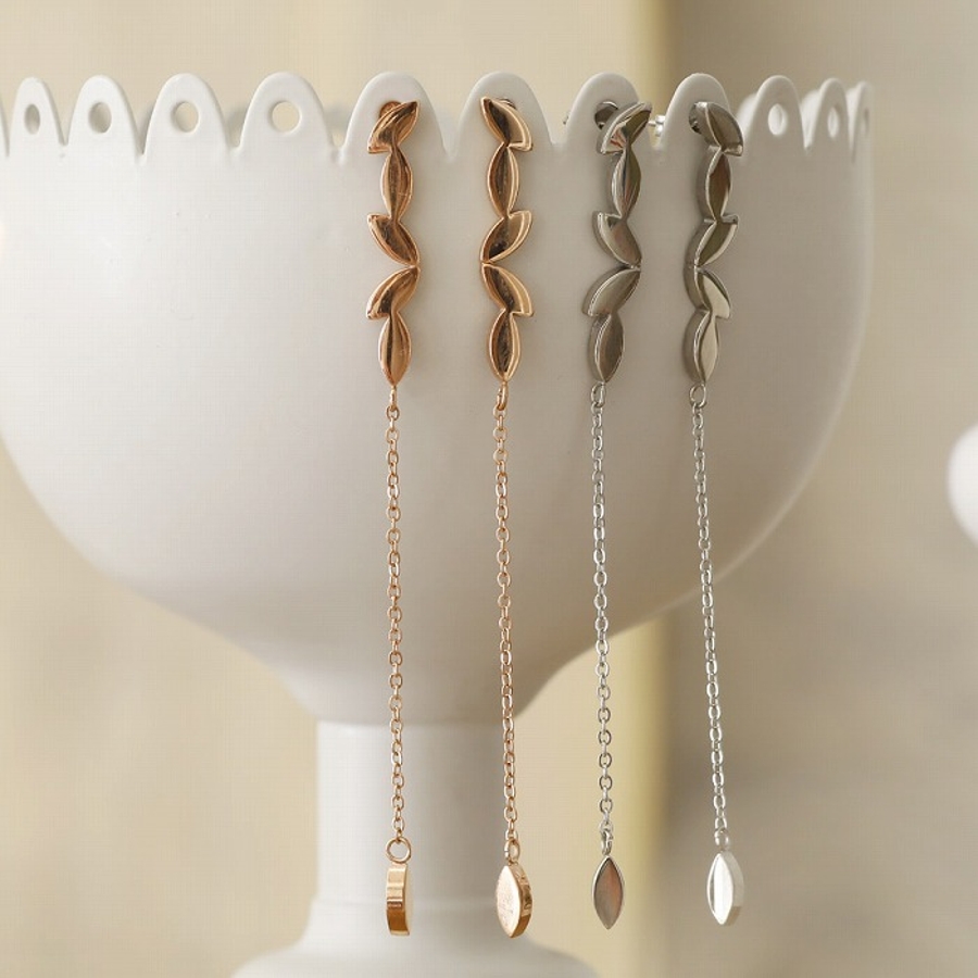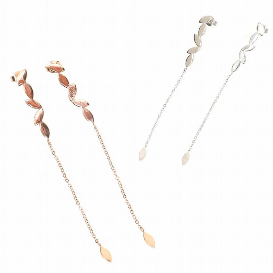 シンプルなミニリーフが5つ連なった大人っぽいデザインのピアス。