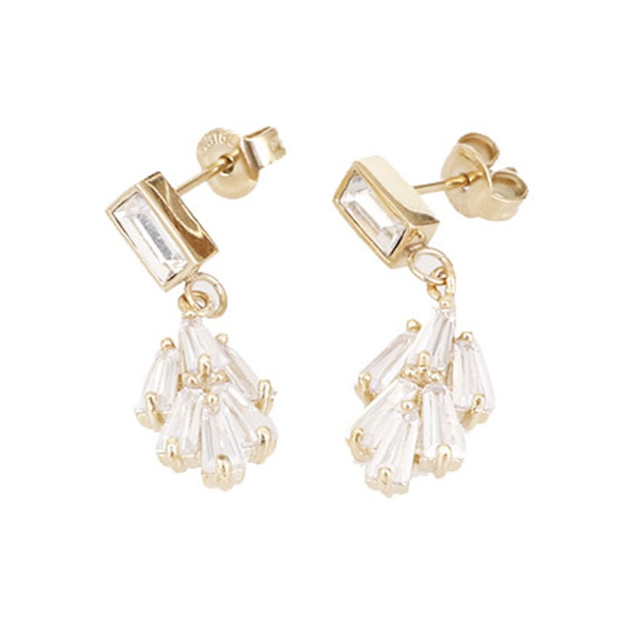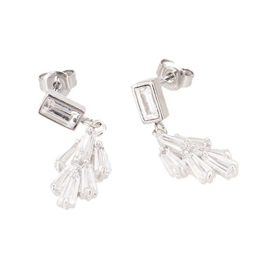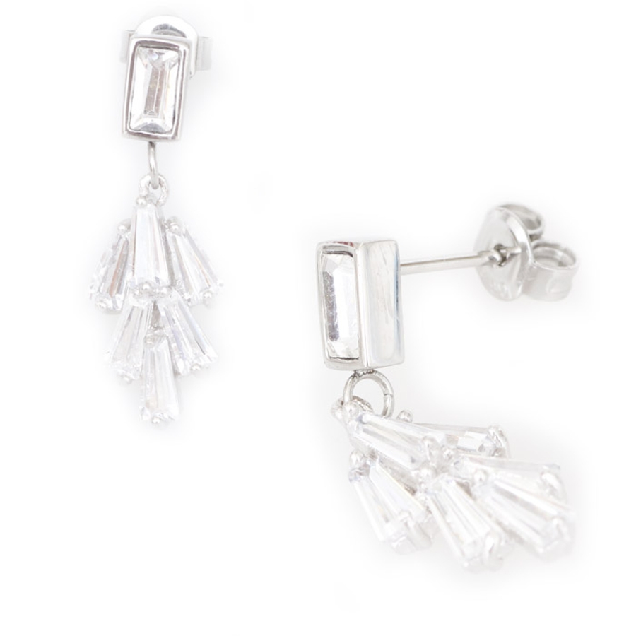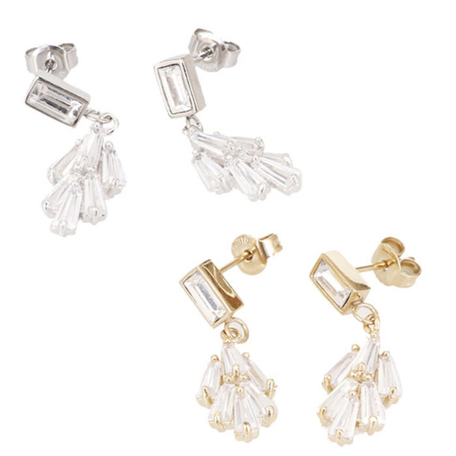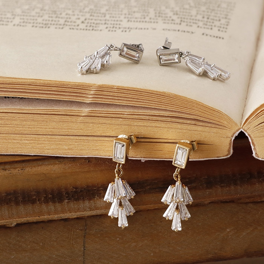 シンプルな長方形のジュエルとリーフモチーフ付きのスタッドピアス。