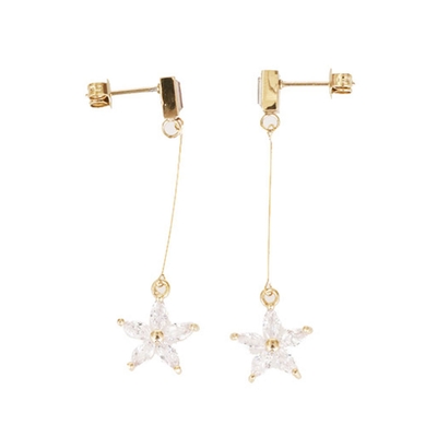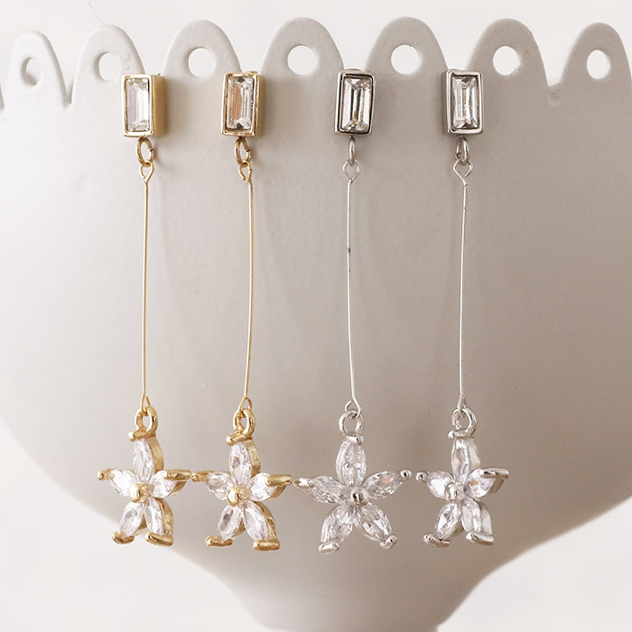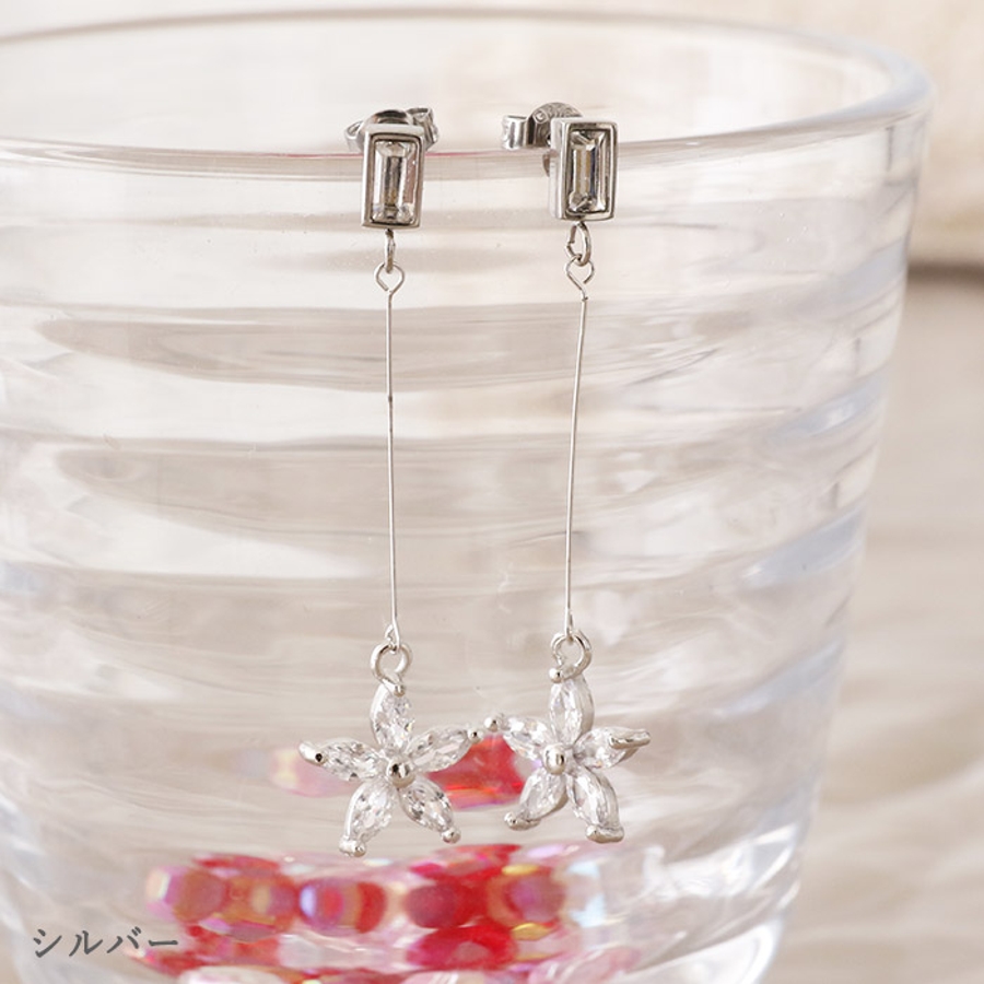 定番人気のフラワーモチーフと華奢なスティックを組み合わせたスタッドピアス。