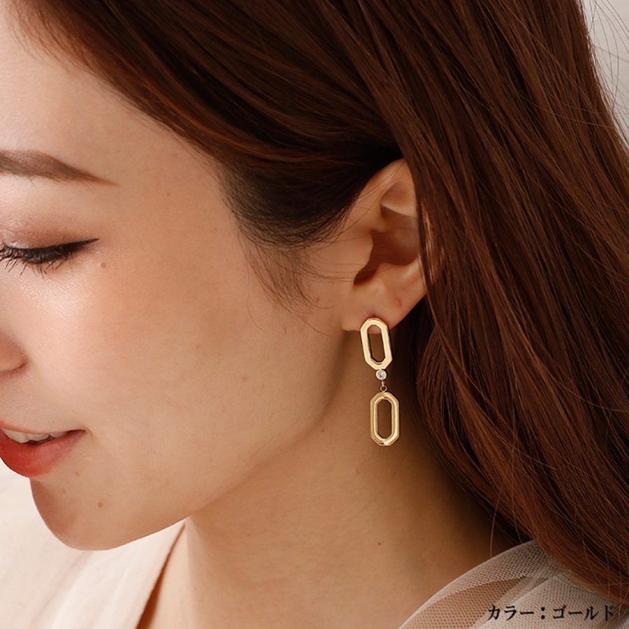 ピアス サージカルステンレス レクタングルフレーム&ジュエル