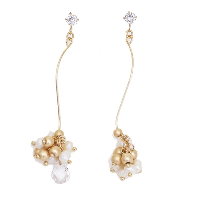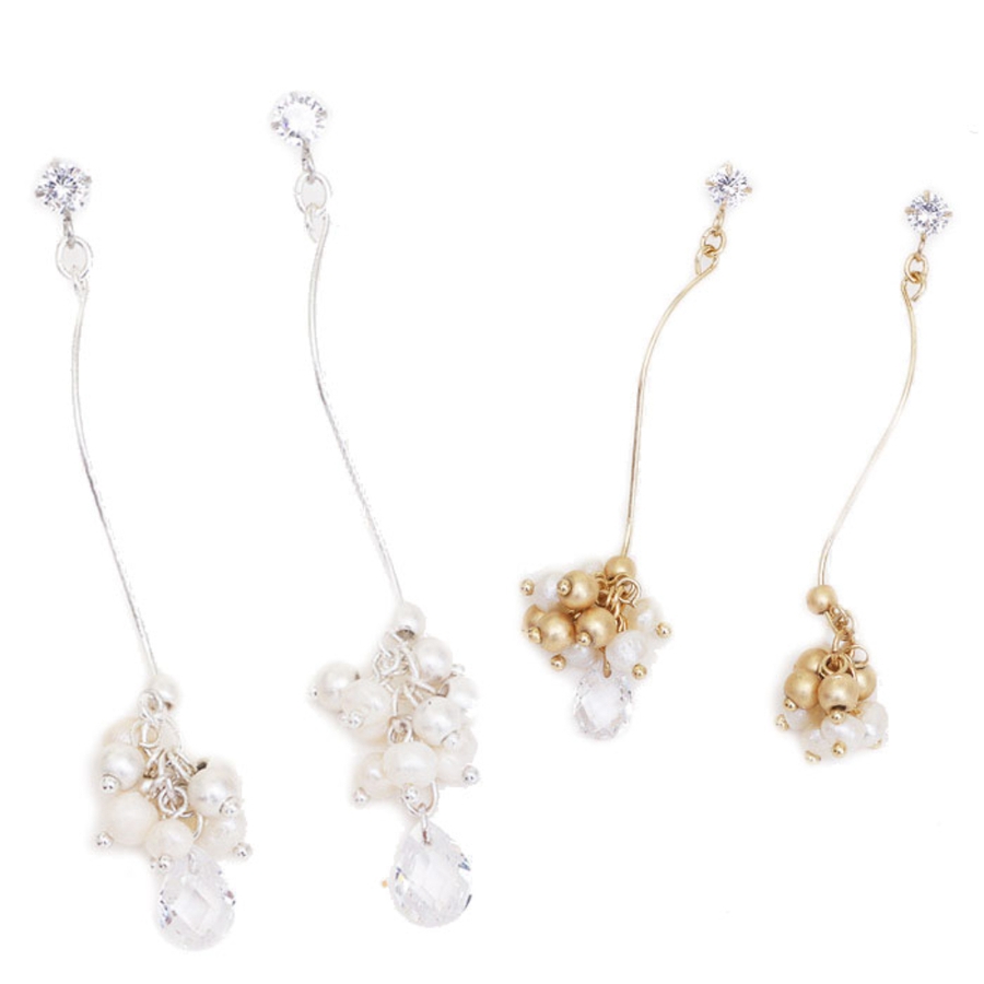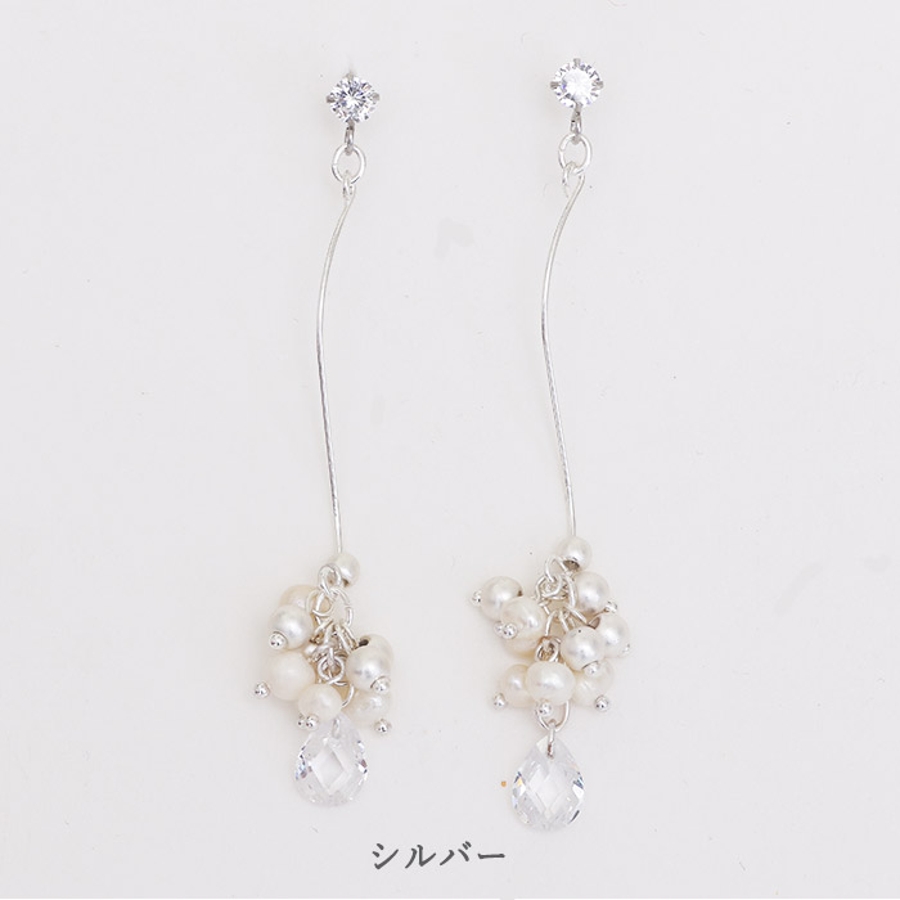 ピアス サージカルステンレス ウェーブスティック×淡水パールビーズ&ジュエル